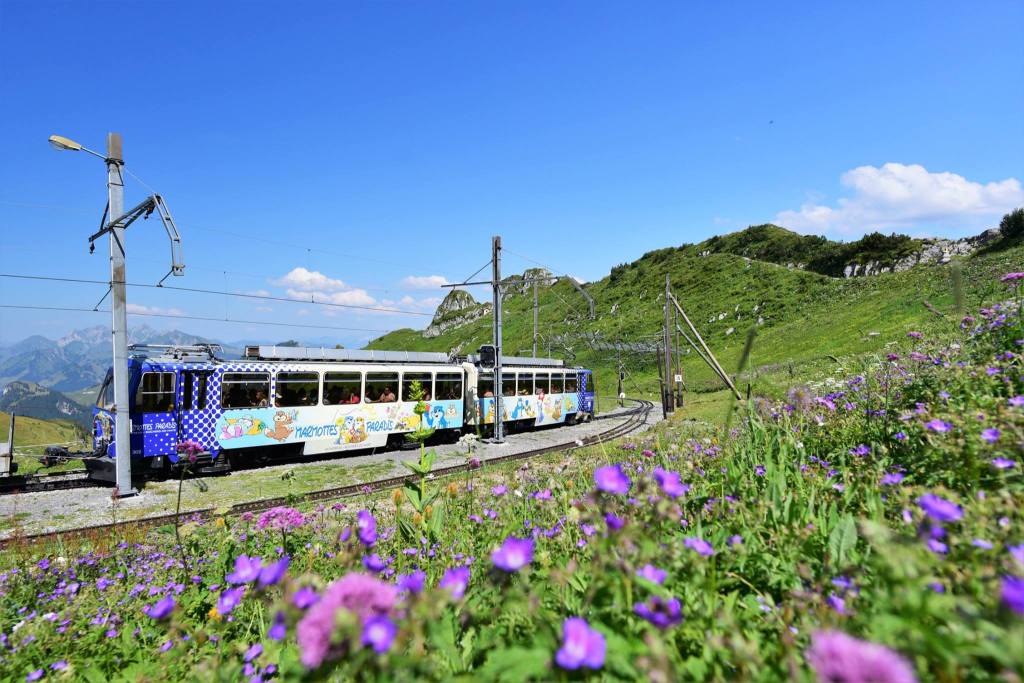 รถไฟที่จะพาเราขึ้นไปชมทัศนียภาพที่งดงามของ Montreux riveria และยังผ่าสถานที่สำคัญในประวัติศาสตร์ของชาติไทย นั่นคือภูเขา Caux