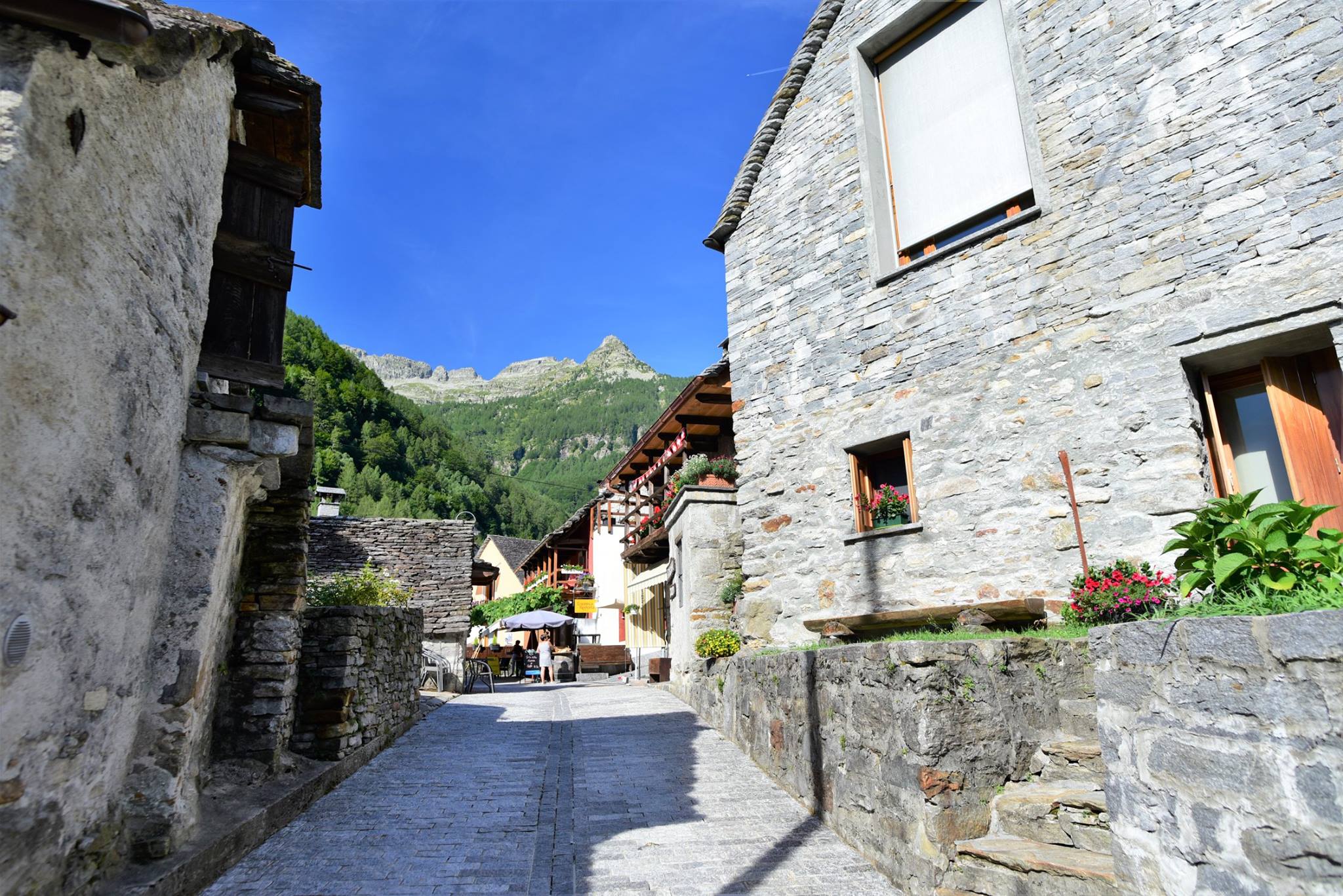 บ้านเรือนของผู้คนจะก่อสร้างด้วยหินซึ่งเป็นเอกลัษณ์ของบ้านในแถบชายแดน สวิส-อิตาลี