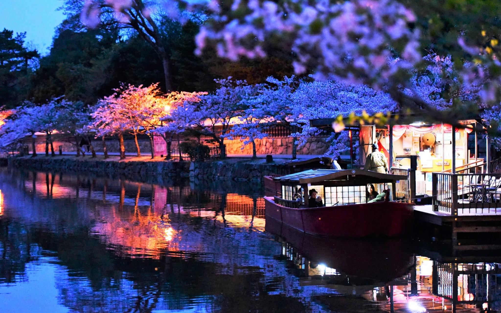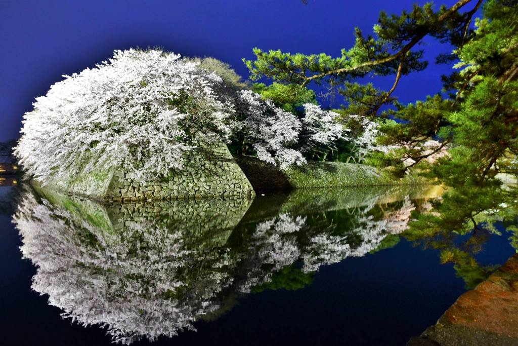 ภาพสำคัญที่ทำให้หลายคนอยากมาเห็นด้วยตา ก็คือภาพซากุระที่มุมกำแพงปราสาท สะท้อนเงาบนผิวน้ำอัน นิ่ง สงบ และแสนงดงามในยามค่ำคืน