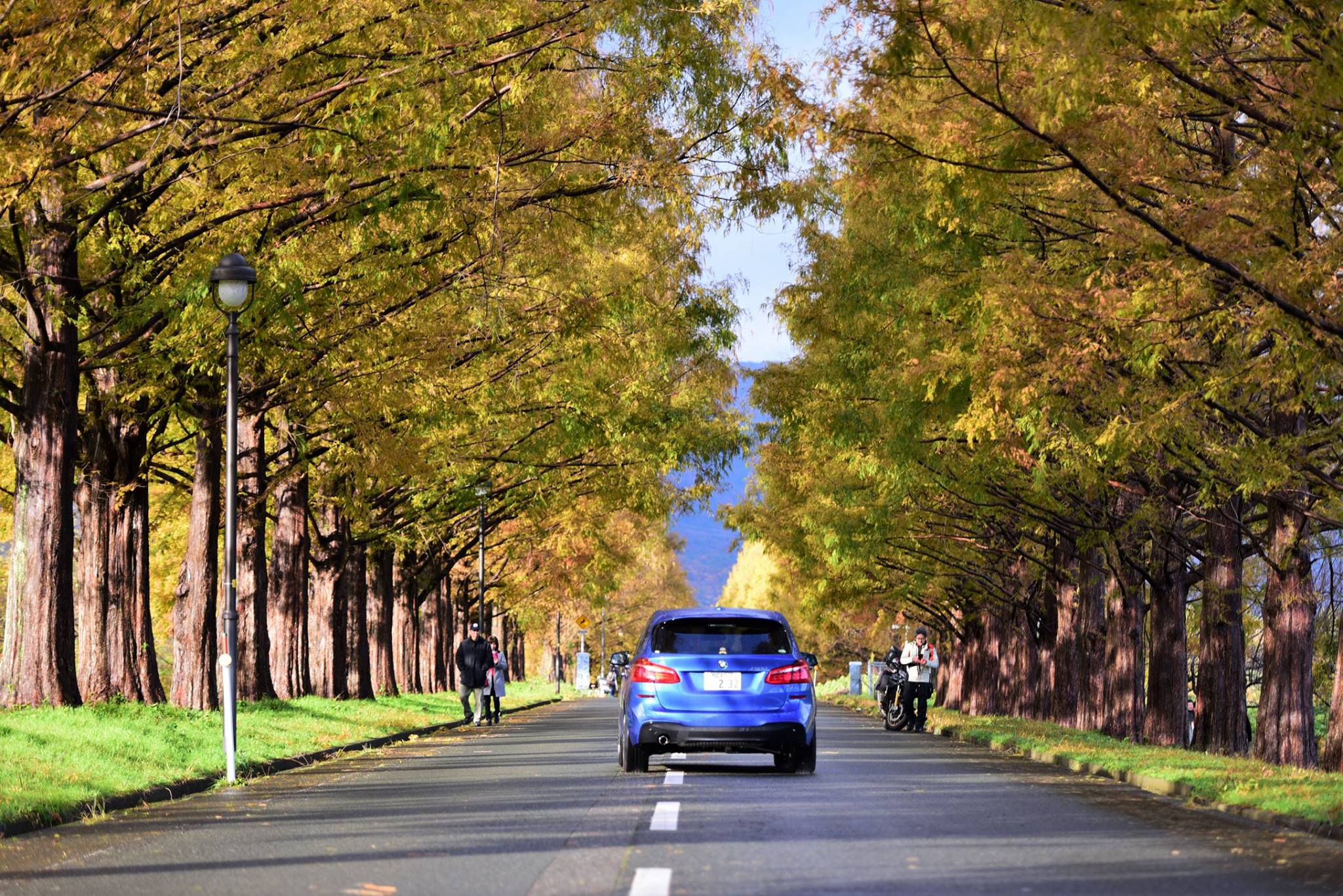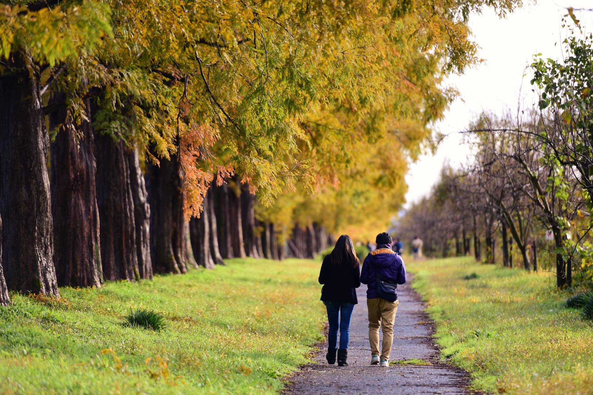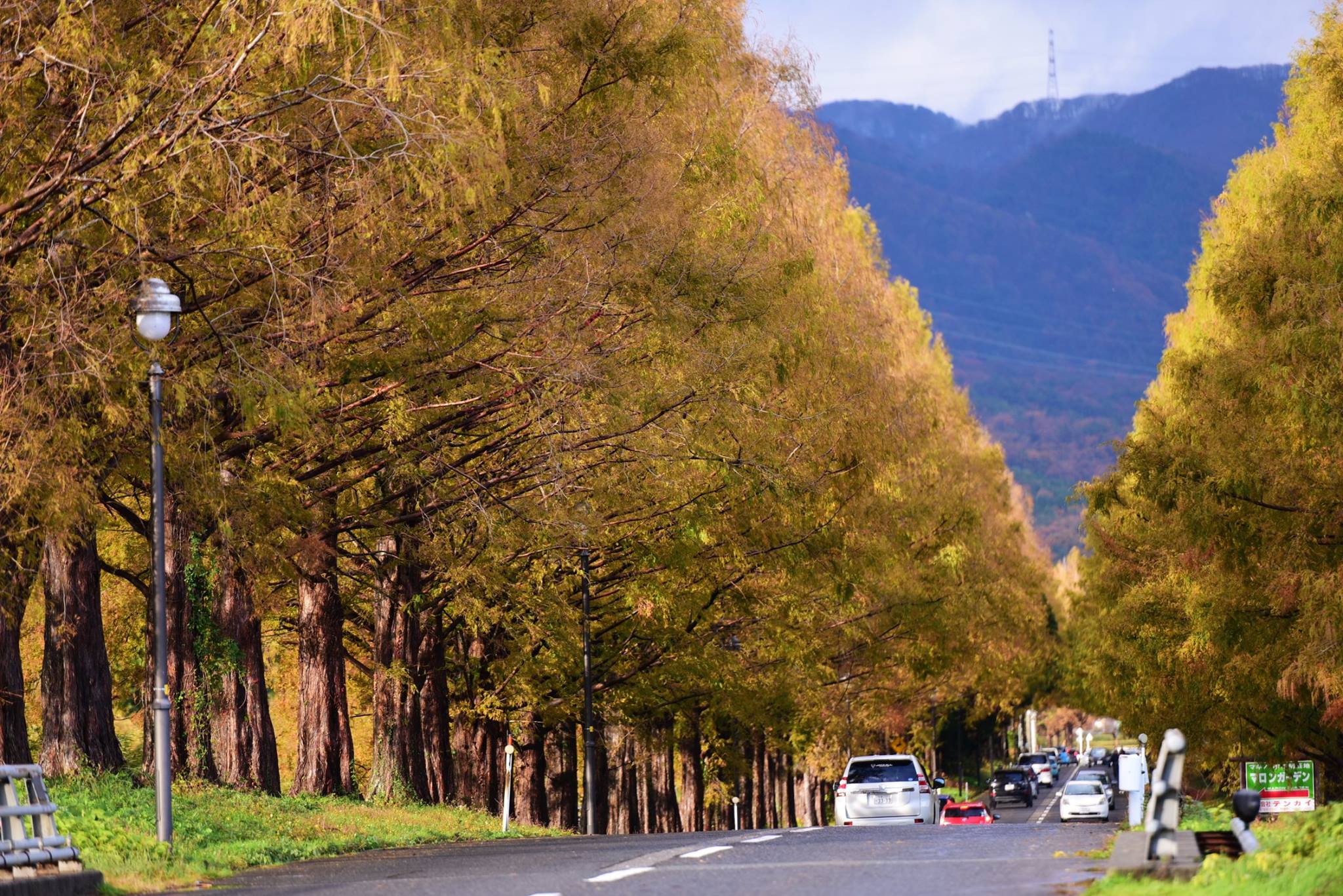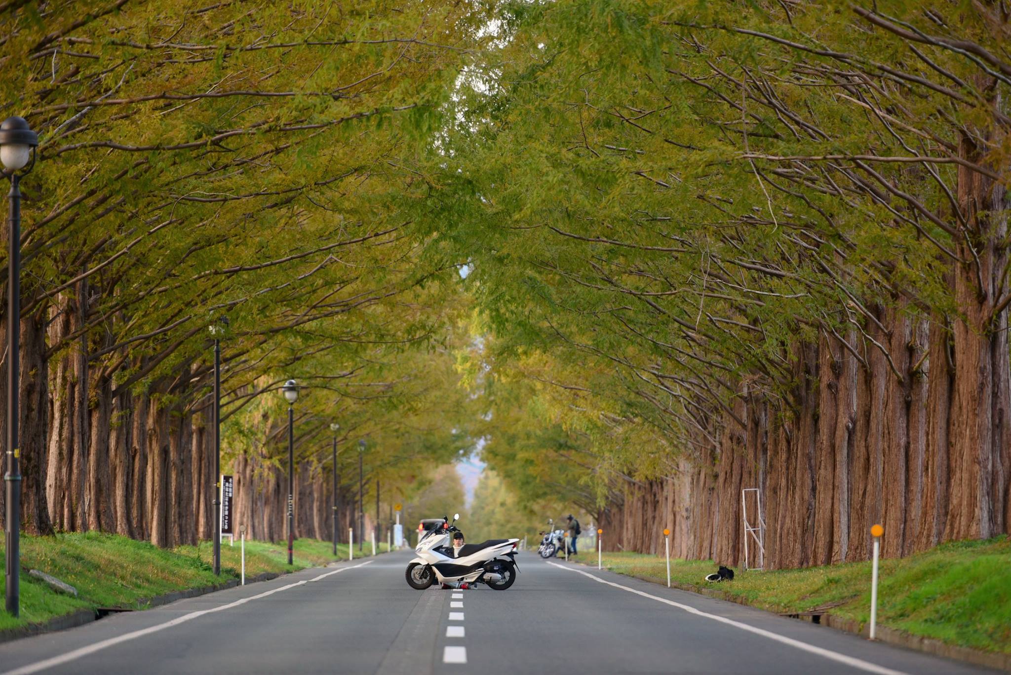 บนถนนที่ทอดยาว สองข้างทางเรียงรายด้วย Metasequoia ซึ่งเป็นต้นสนชนิดหนึ่ง ยามฤดูใบไม้ร่วง ใบของมันจะเปลี่ยนเป็นสีส้ม (ต่างจากสีเหลืองของ Gingko ) เปล่งสีสันสวยงามโอบล้อมถนนเส้นทางยาวสองกิโลเมตร
