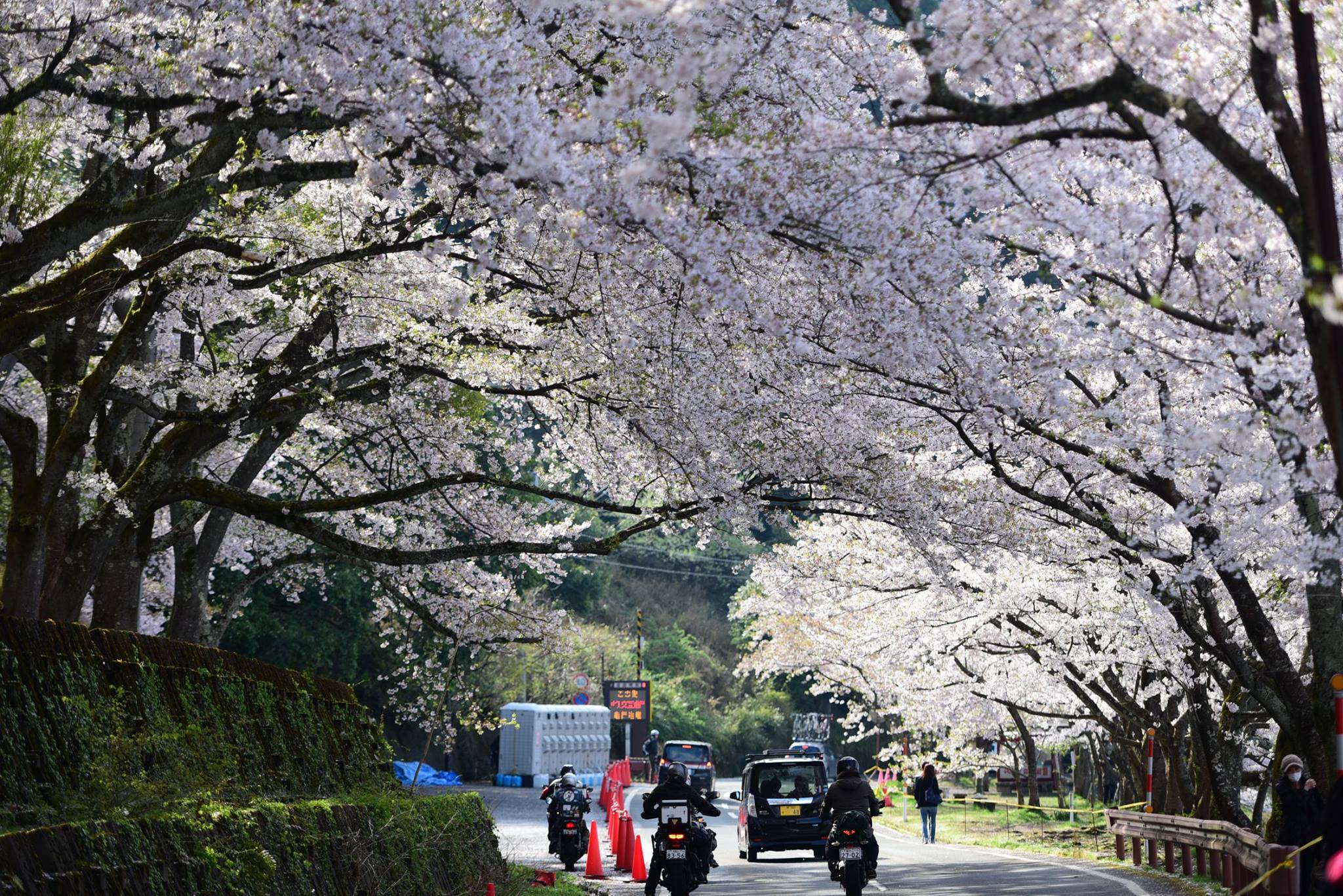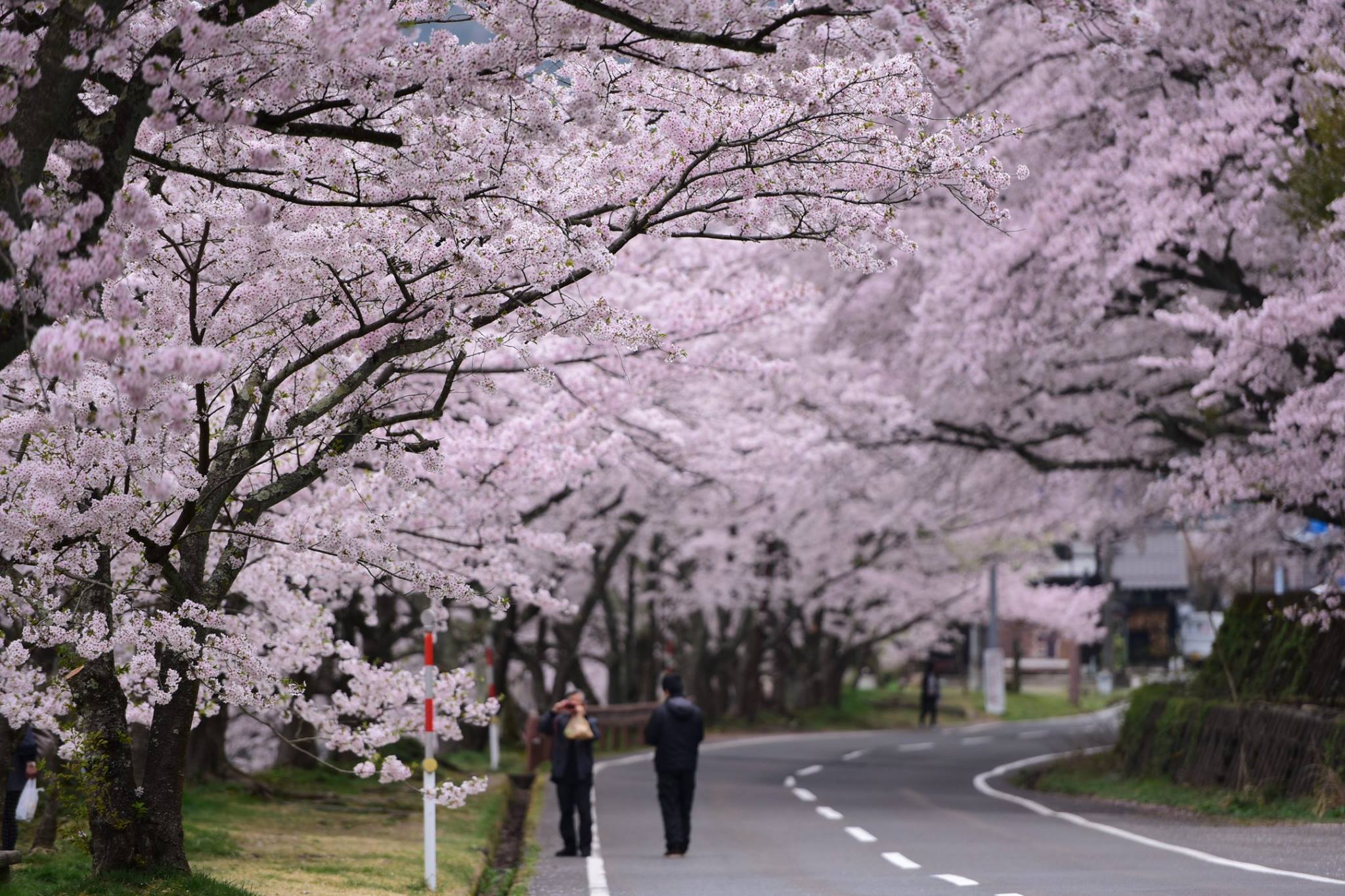ถนนเส้นแรกชื่อว่า Kaizu osaki ตั้งอยู่ริมทะเลสาบ Biwako เป็นอุโมงค์ซากรุะริมทะเลสามที่ว่ากันว่างดงามที่สุดของญี่ปุ่น