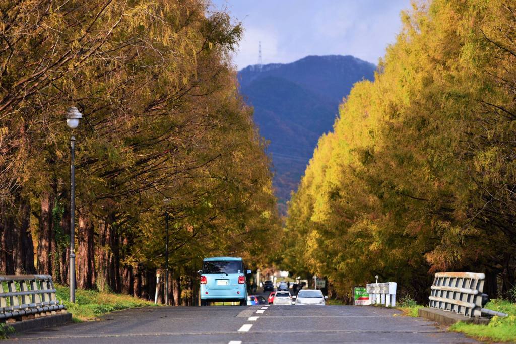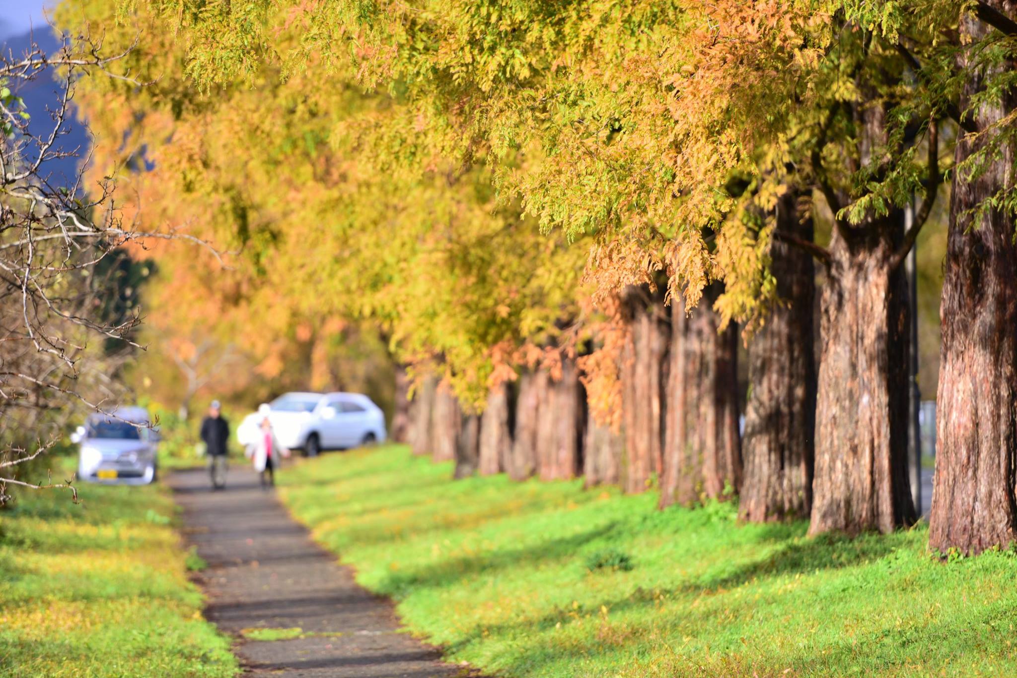 ส่วนอีกสายชื่อว่า Metasequoia namiki รายล้อมด้วยภูเขาและสวนผลไม้