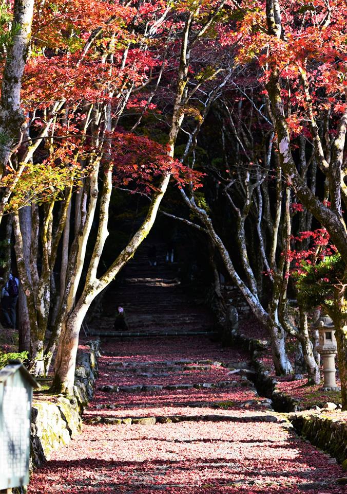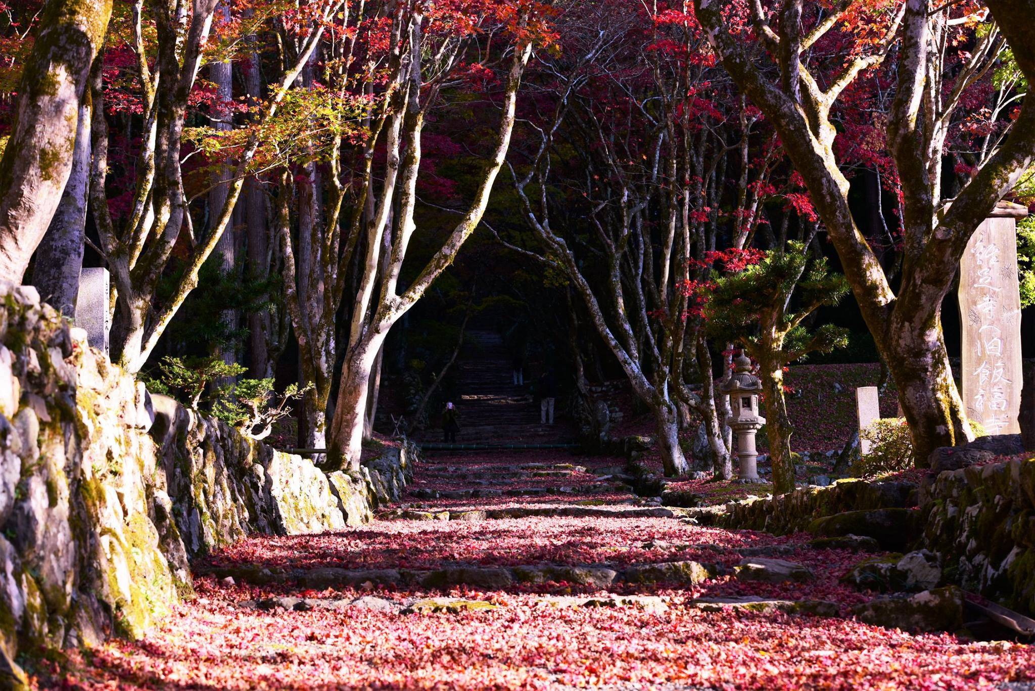 วัดแรกที่อยากมาแนะนำ ถือเป็นวัดที่มีชื่อเสียงโด่งดังในการชม Momiji มากที่สุดแห่งหนึ่งของ Shiga เลยก็ว่าได้ ภาพถ่ายที่เป็นที่ติดตาและเชื้อเชิญให้บรรดาช่างภาพทั้งหลายได้เดินทางมาถึงที่นี่ก็คือ ภาพ Red carpet ที่ปูอยู่บนทางเดิน ราวกับ ขั้นบัดไดที่ปูด้วยพรมแดง