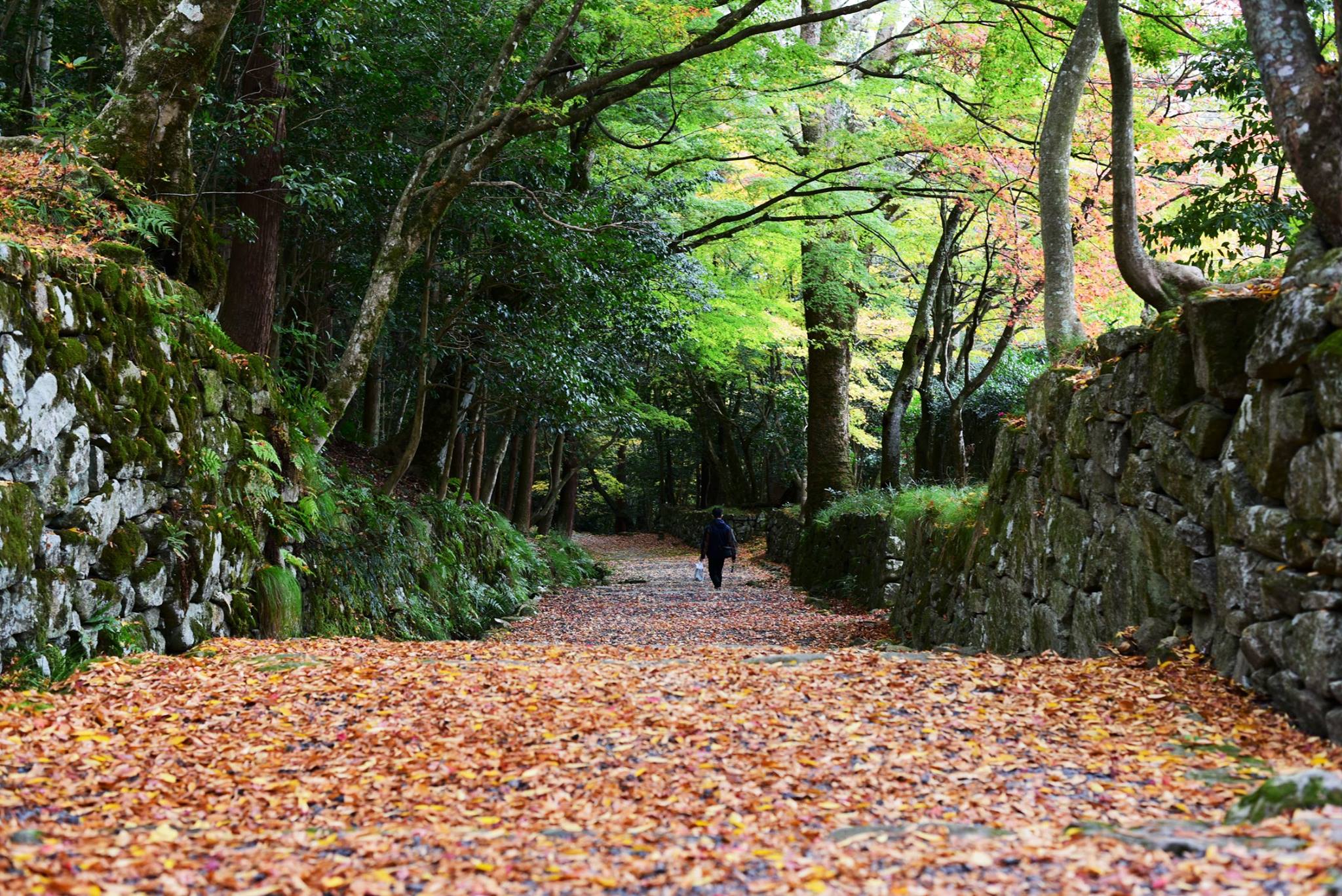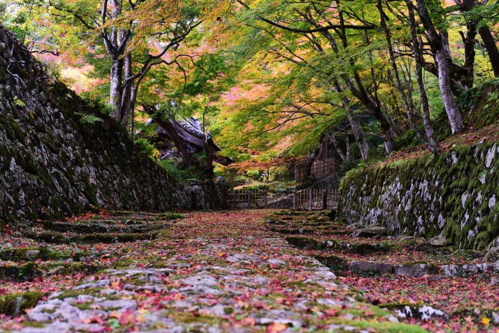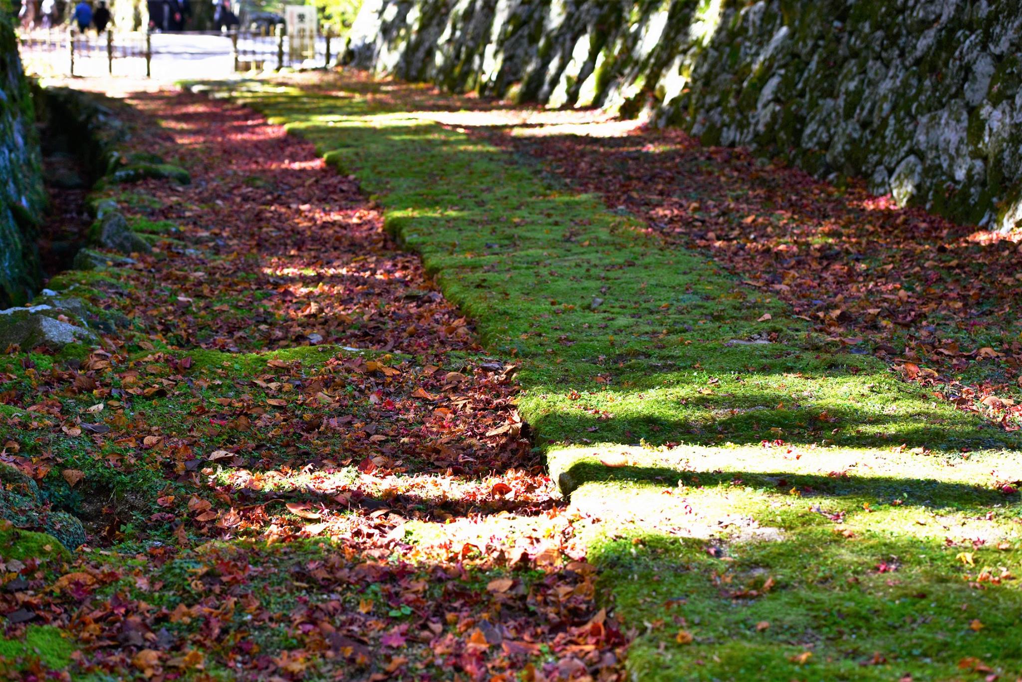 ต่อเนื่องจากจุดถ่ายภาพ ทางเดินโค้งบันได้มอสที่มีใบไม้ร่วงลงมา…. จะมีทางเดินลงไป ออกนอกวัดทางด้านล่าง คนละฝั่งกับประตูใหญ่
