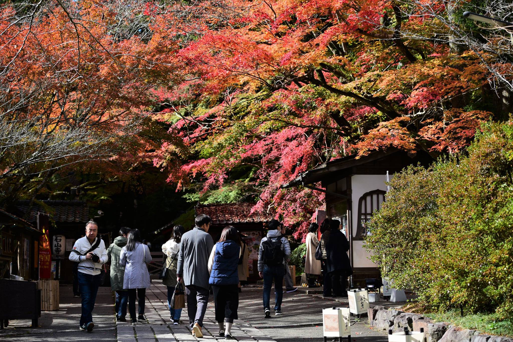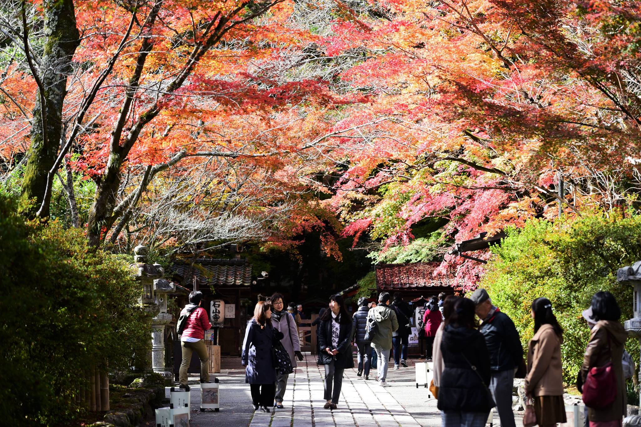 จุดที่เป็นไฮไลท์ดึงดูดสำหรับวัด Ishiyamadera ก็คือ การเปิดไฟ light up ยามค่ำที่บริเวณ ทางเดิน main gate ซึ่งมีอุโมงค์ momiji