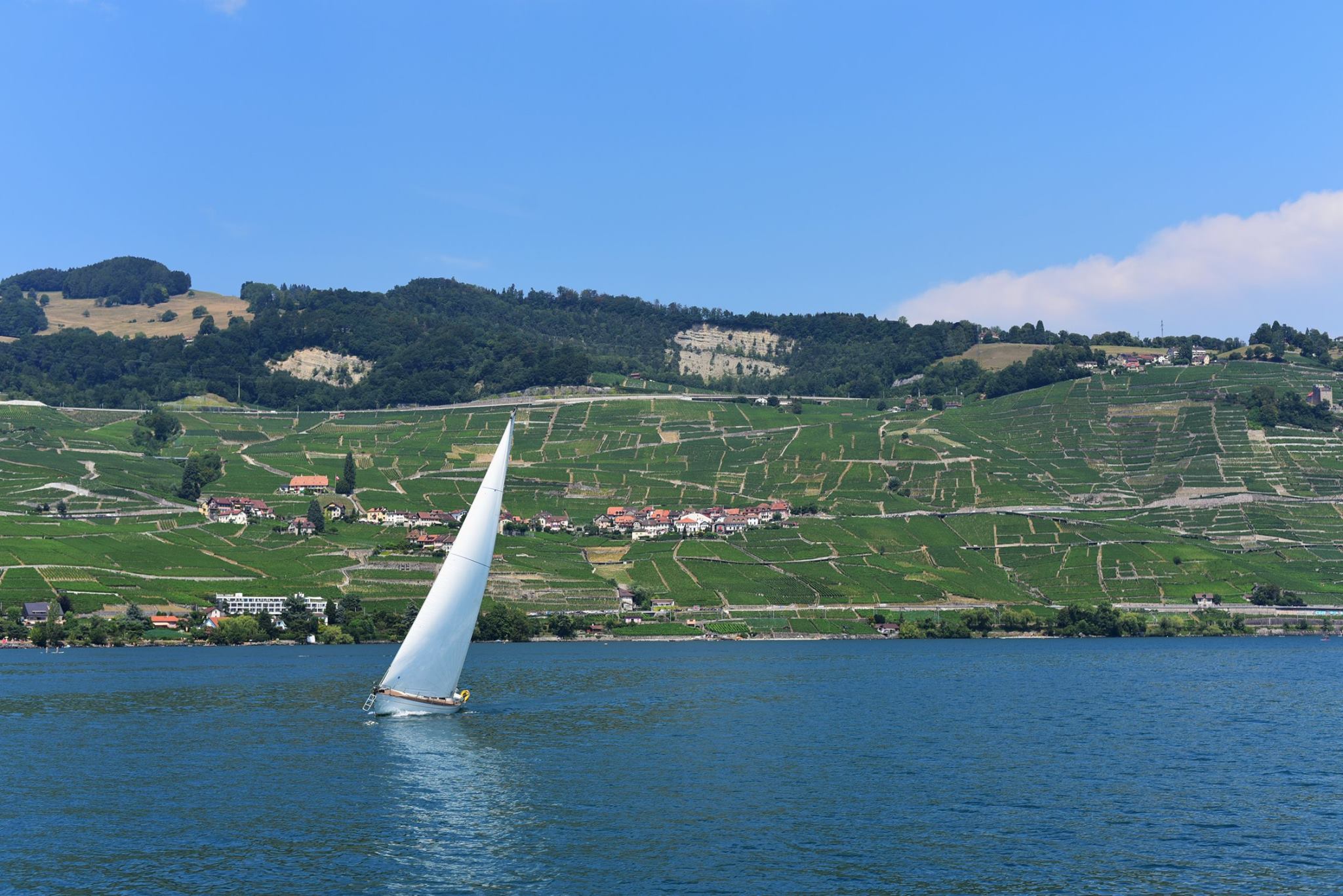 ทัศนียภาพที่เราจะเห็นความแตกต่างจากทะเลสาบ Thun หรือ Brienz ได้ชัดเจนก็คือ ไร่องุ่นในแถบ Grandvaux ถ้าได้มาในช่วงใบไม้เปลี่ยนสี คงสวยงามอย่าบอกใครเชียว