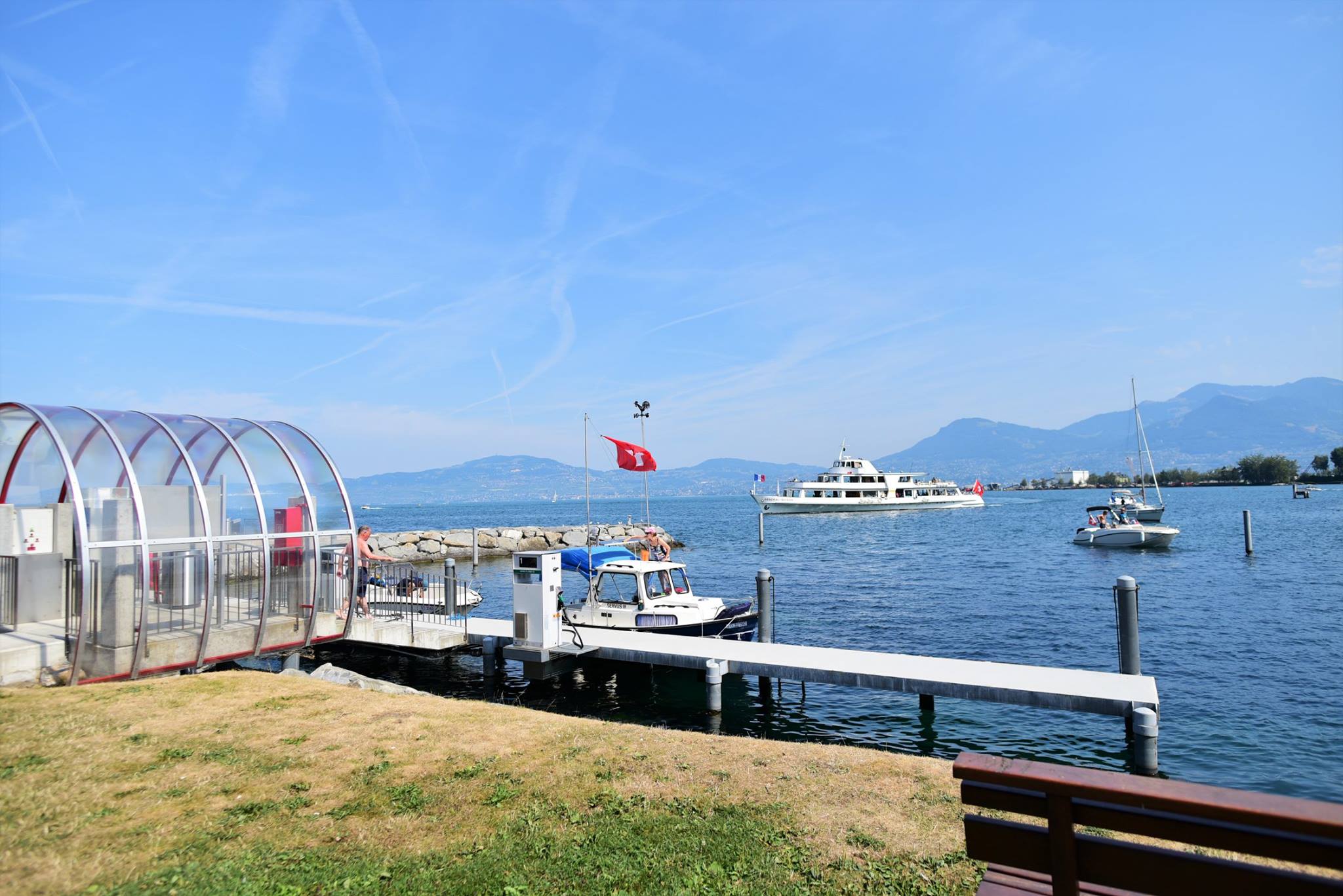 แต่เนื่องจากตอนที่แล้ว ลุงหมอได้เดินทางไปนั่งรถไฟเล็ก minitrain ที่เมือง Bouveret ซึ่งเป็นเมืองติดทะเลสาบเจนีวาเช่นกัน จึงได้ออกเดินทาง โดยกระโดดขึ้นเรือจากท่า Bouveret