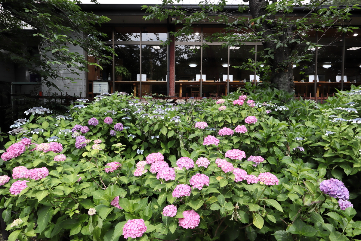 และเมื่อเข้าสู่ฤดูฝน บริเวณสวน Shukugawa ก็จะเต็มไปด้วยดอก Ajisai บานอยู่รอบบริเวณ
