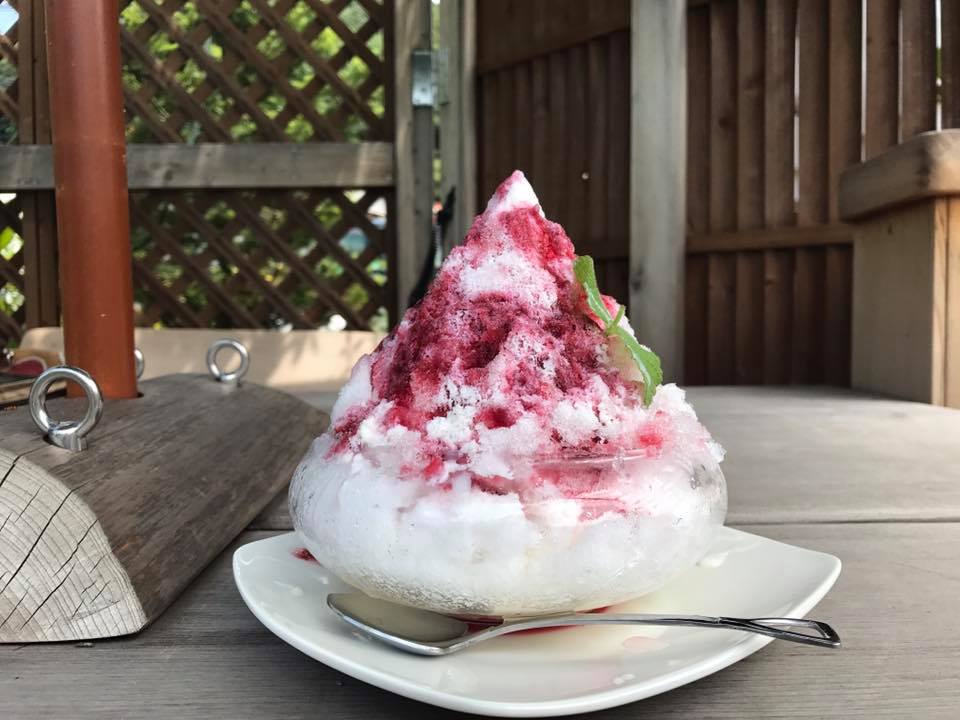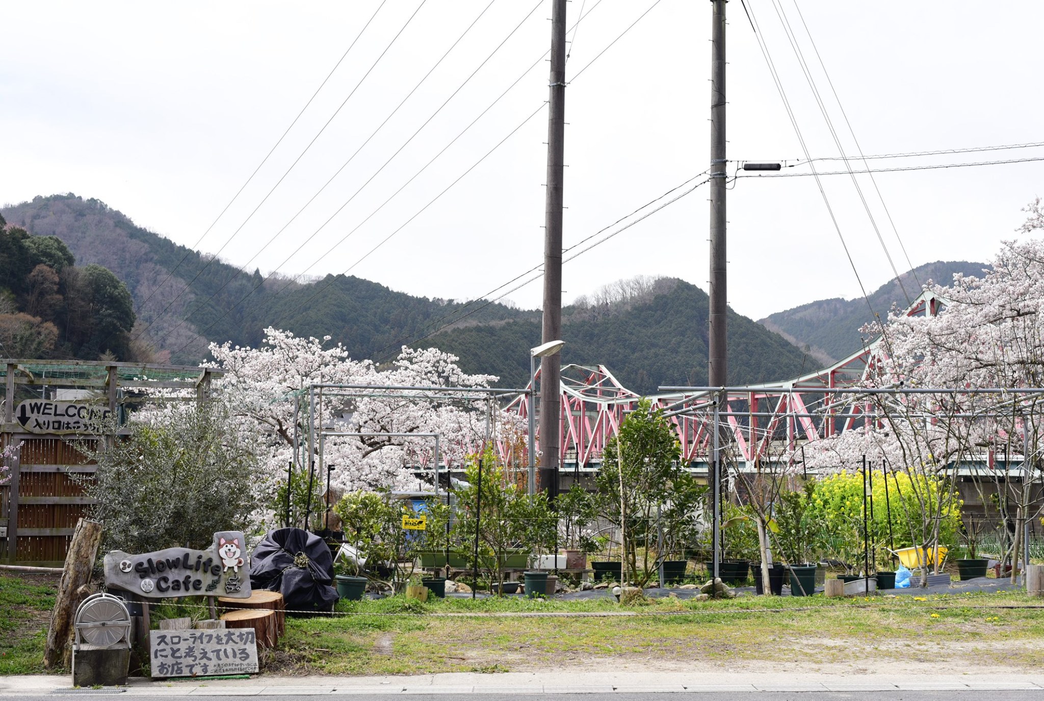 ร้าน Slow life Cafe โดดเด่นตั้งอยู่ที่เชิงสะพาน Kasagi bridge