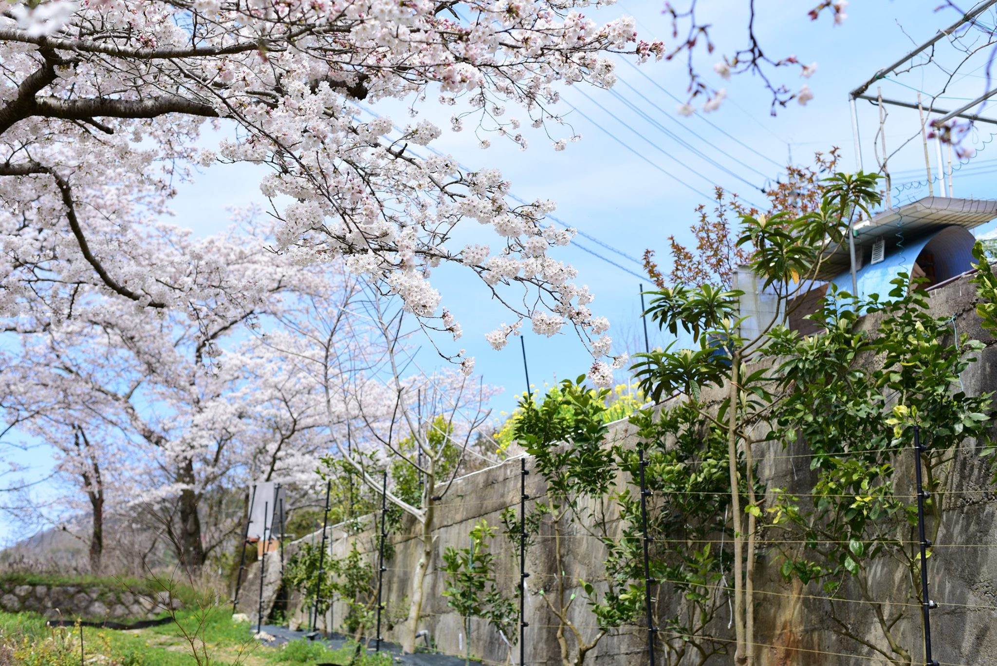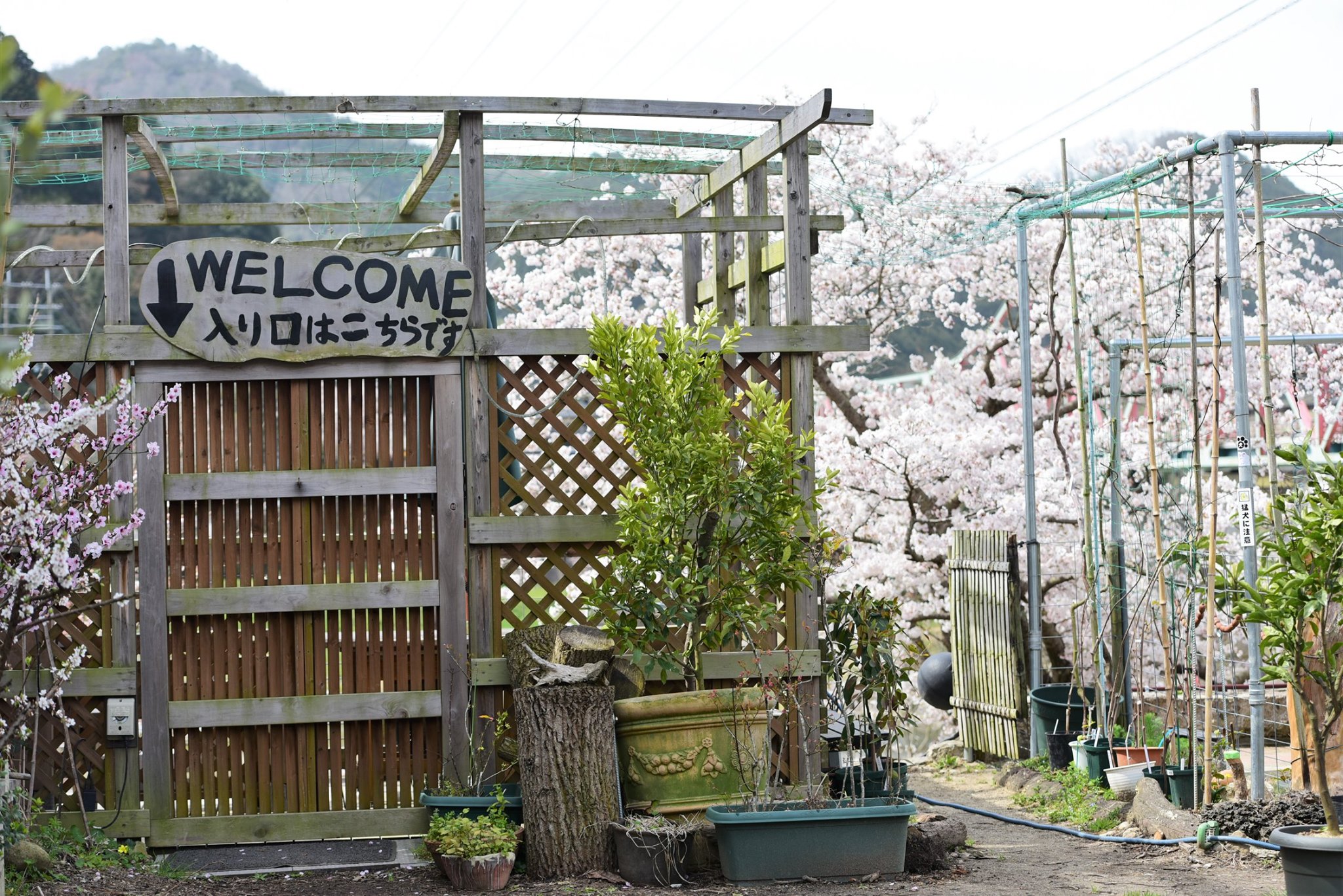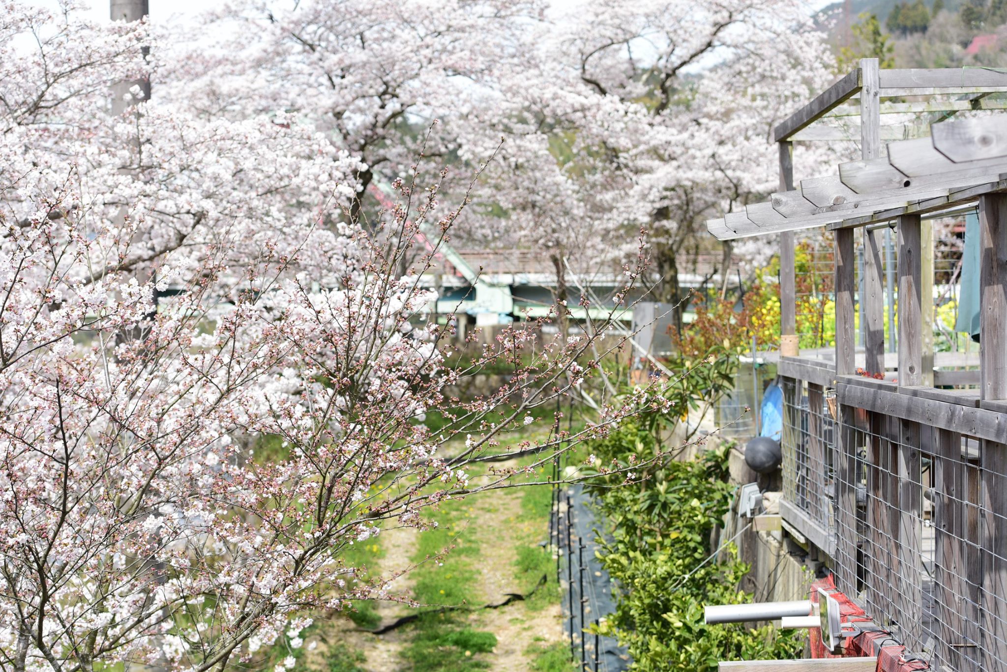 ระเบียงนั่งรับประทานอาหารของร้าน กับซากุระ ที่กำลังสวยงามเต็มที่