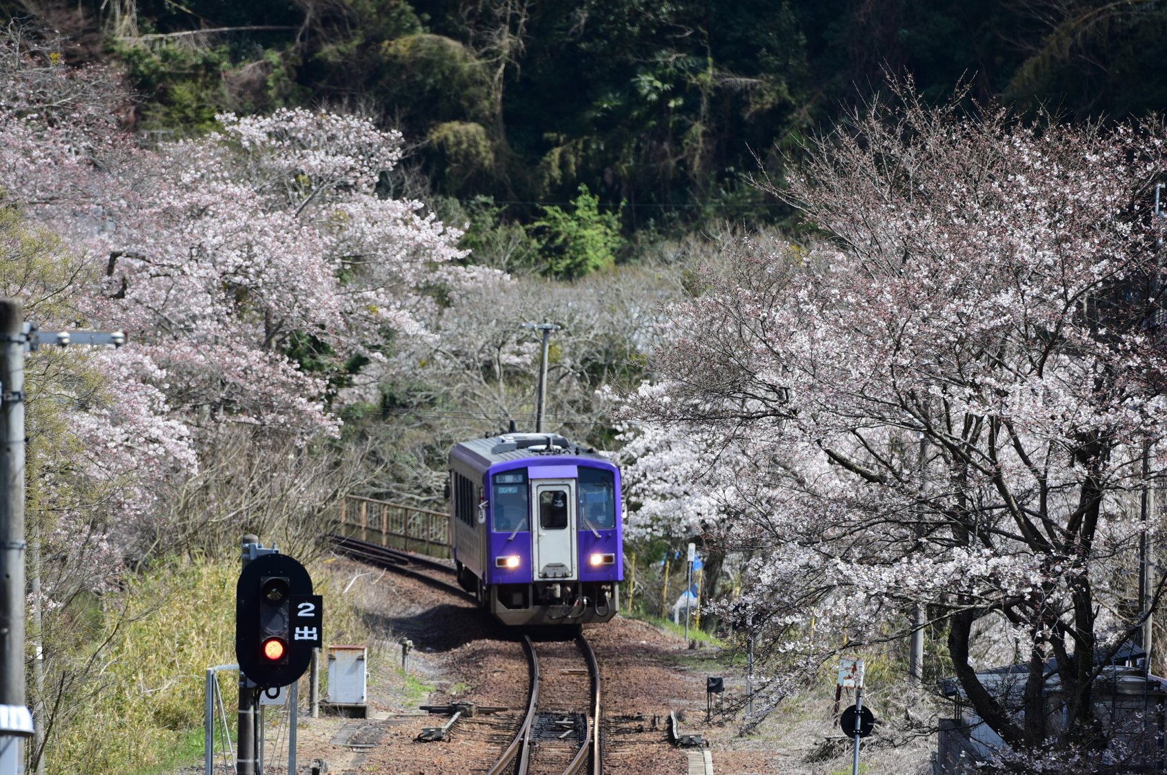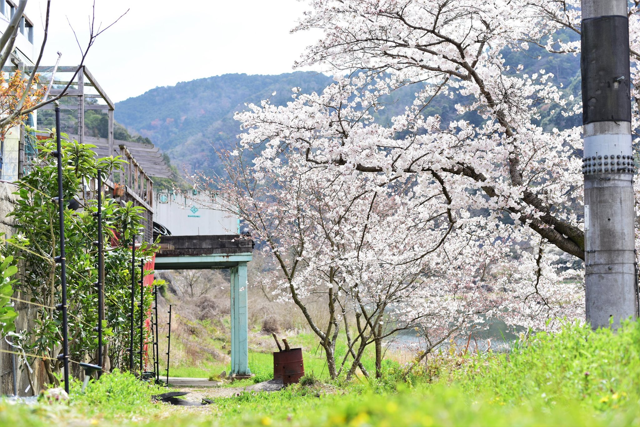 ซากุระต้นงาม ที่หน้าสถานี ใครออกจากสถานีก็ต้องแวะถ่ายภาพ