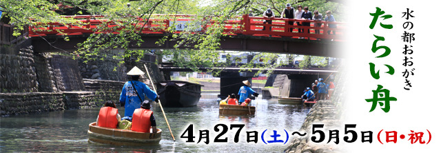 เมื่อผ่านฤดูใบไม้ผลิ ซากุระโรยไปหมดไปแล้ว ก็จะมีกิจกรรมนั่งเรือแจวที่มีรูปร่างเป็นอ่างกลมๆ ที่เรียกว่า “tarai-bune” ในแม่น้ำ Suimon รอบปราสาท Ogaki อีกด้วย