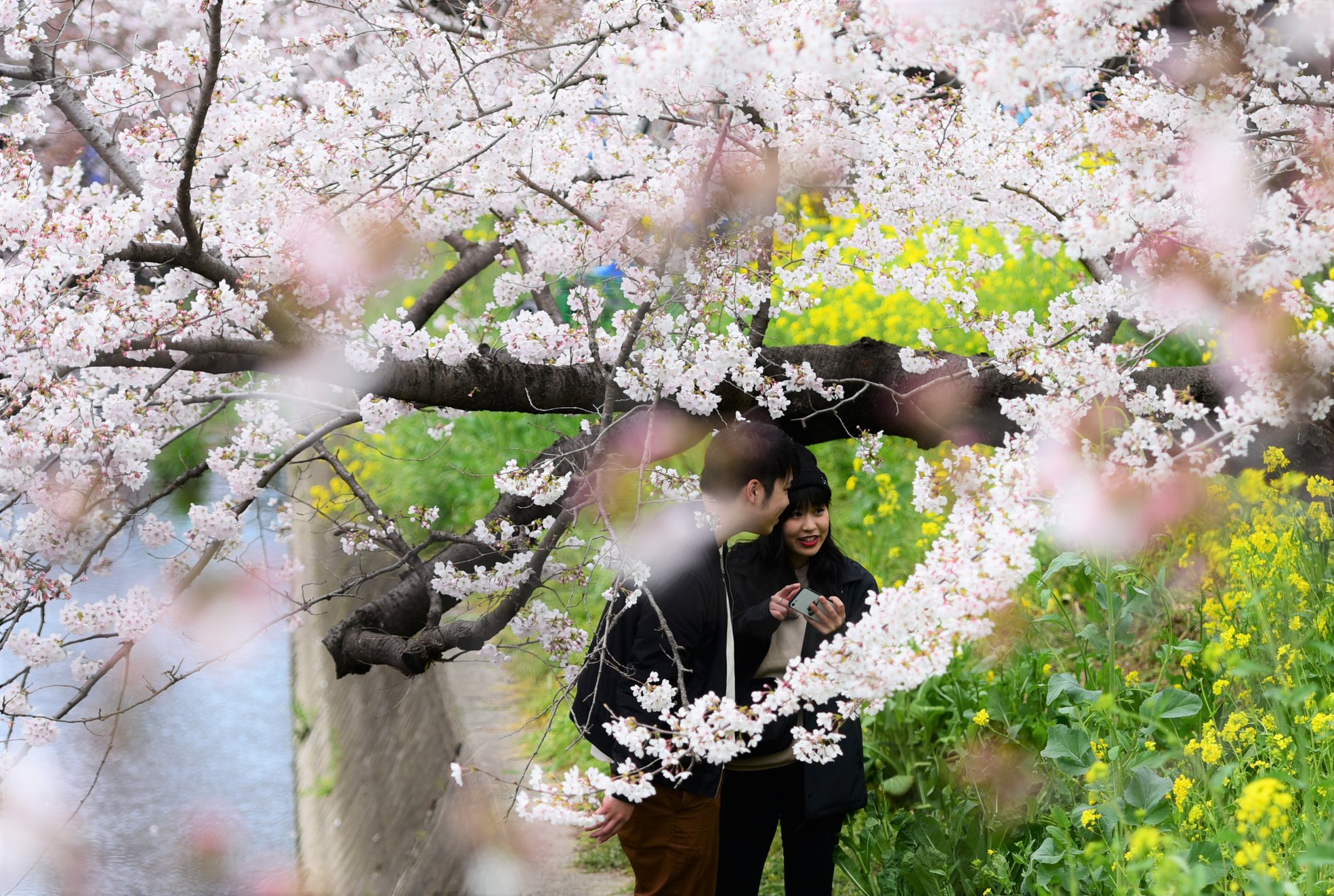 ที่นำความสดใสมาให้สองฝั่งแม่น้ำ ก็คือหนุ่มสาวเป็นคู่ๆ ที่พากันมาชมดอกไม้ ดูแล้วแต่ละคนต่างมีความรักที่สดใสเหมือนบรรยากาศของฤดูใบไม้ผลิ