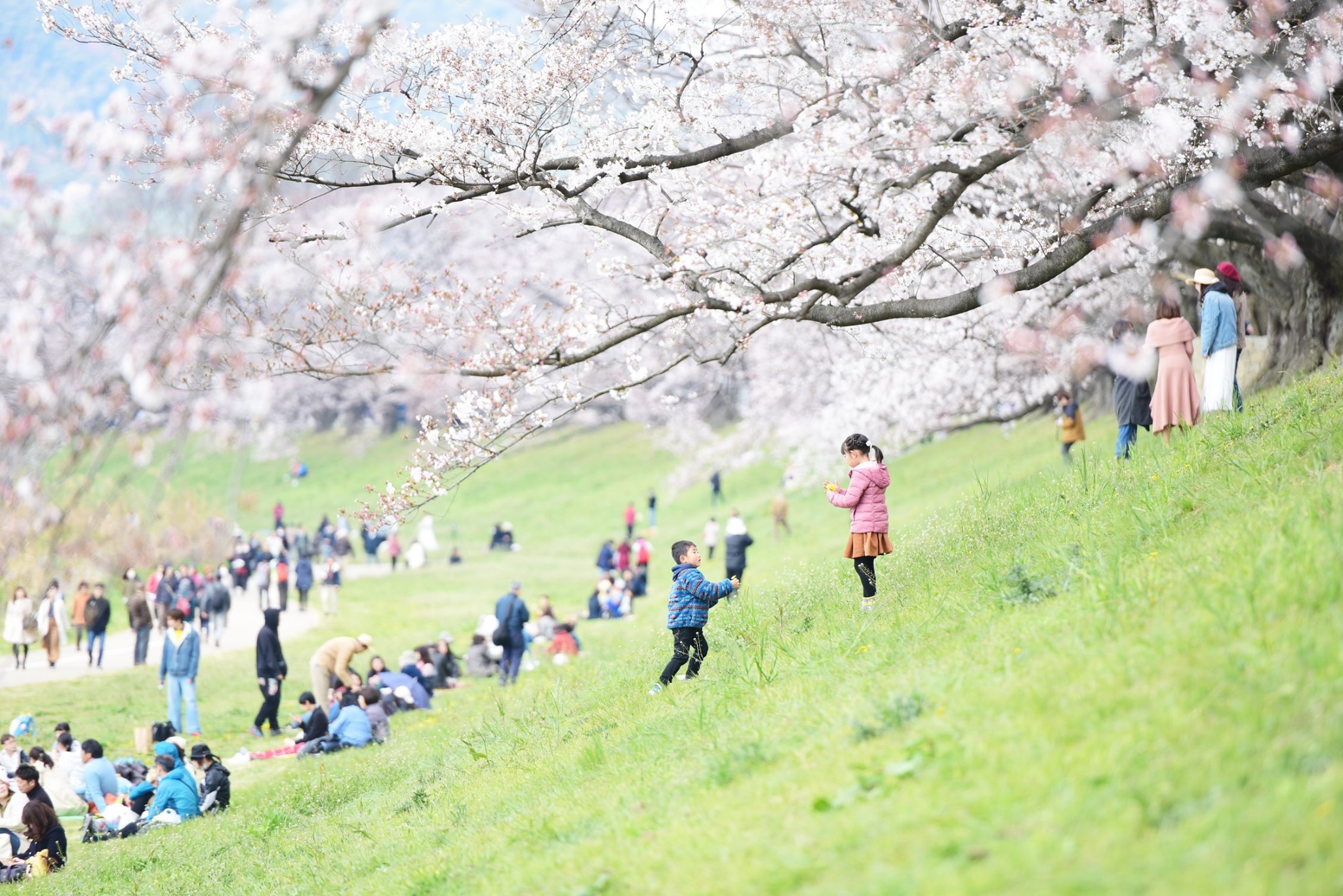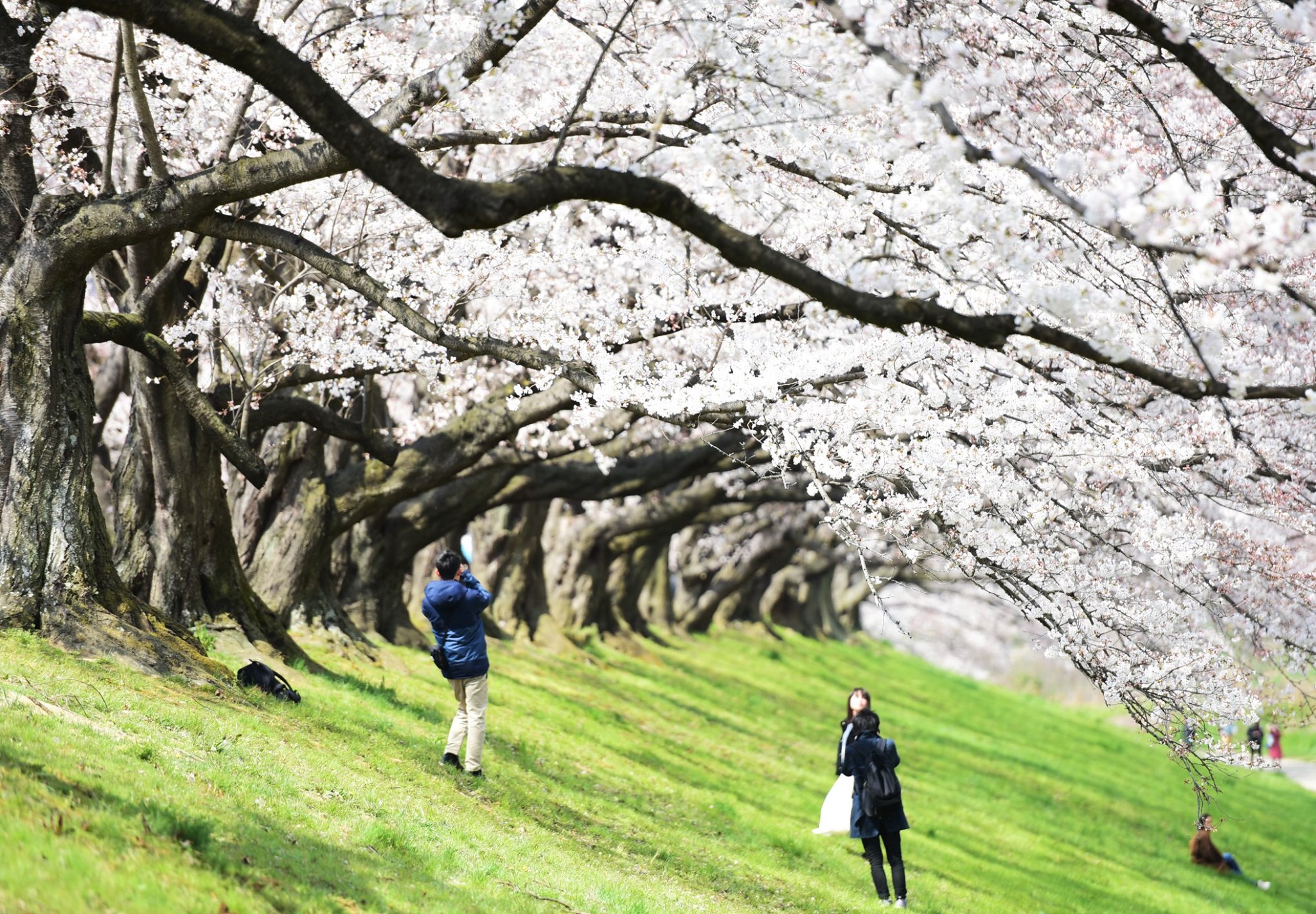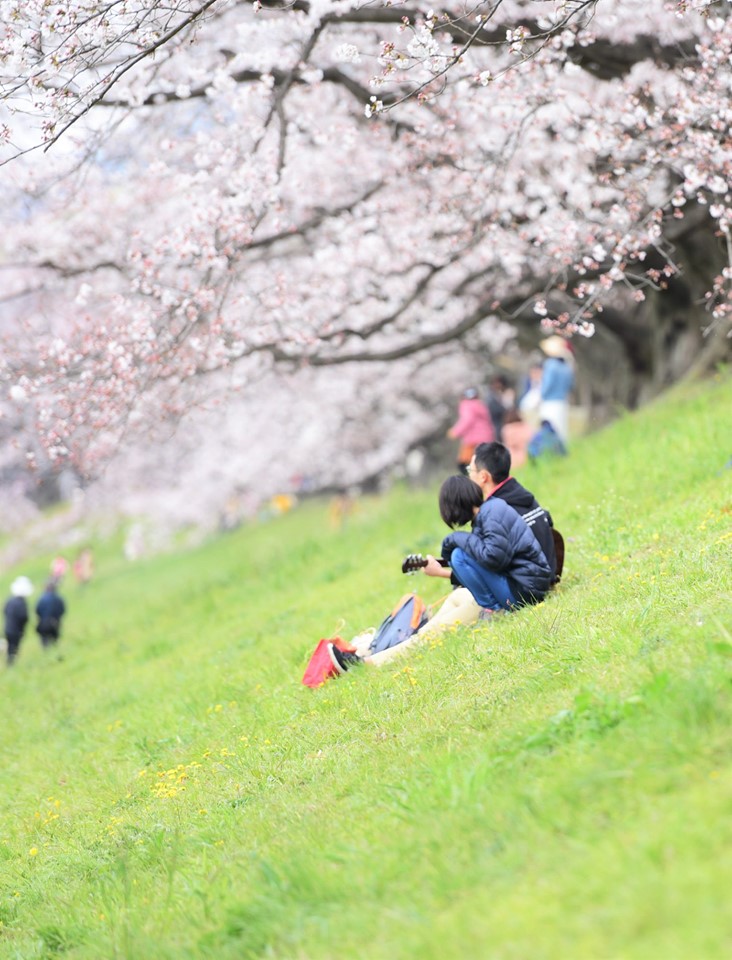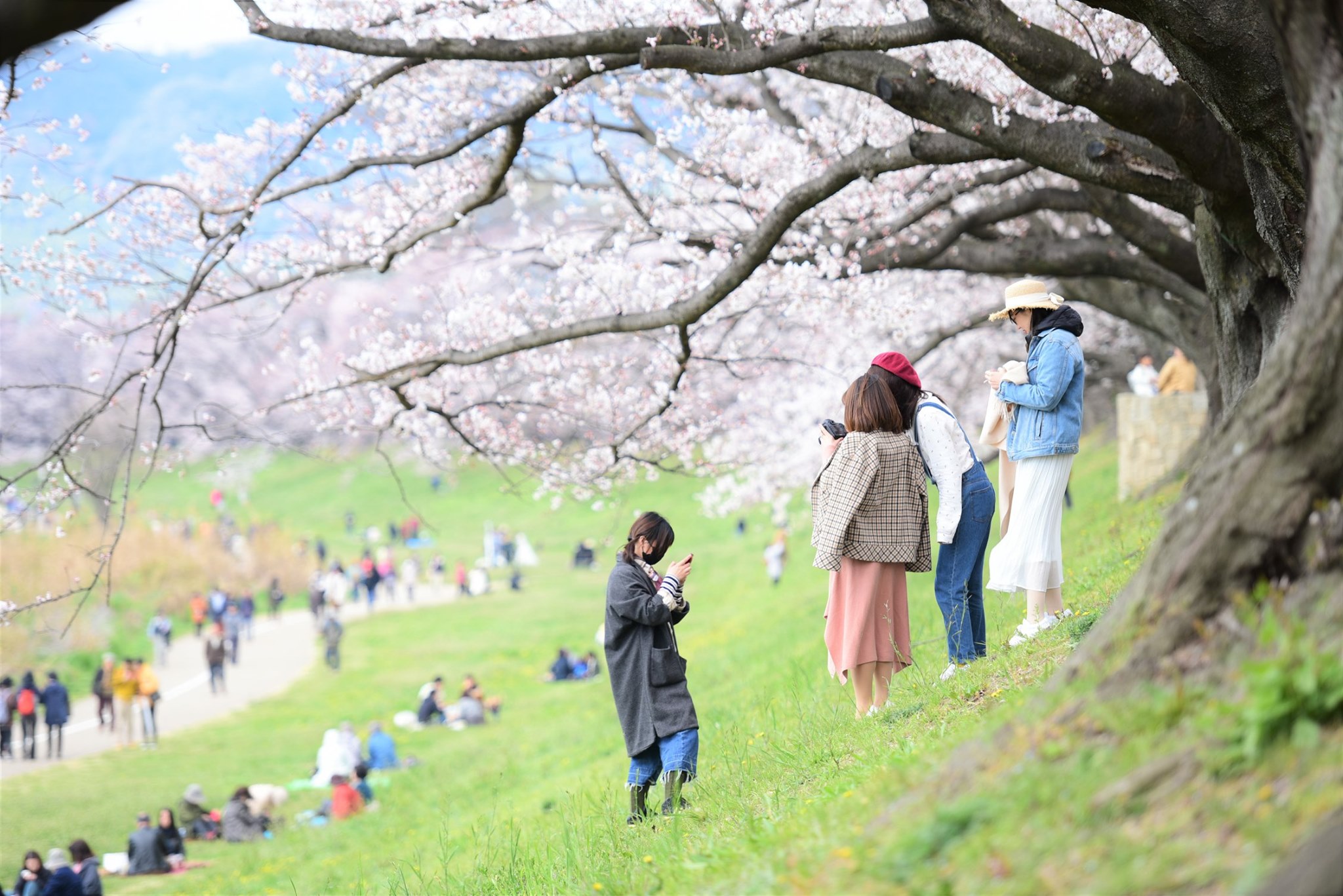 เมื่อเราเดินจากสถานีรถไฟ เดินข้ามแม่น้ำมา จะเห็นว่ามีนักท่องเที่ยวจำนวนมากที่หลั่งไหลเดินตามกันมา แต่ด้วยความที่บริเวณสวนมีพื้นที่อันกว้างใหญ่ แนวต้นซากุระที่ทอดยาว สามารถรองรับผู้คนจำนวนมากได้อย่างสบายๆ ไม่รู้สึกถึงความแออัดแต่อย่างใด