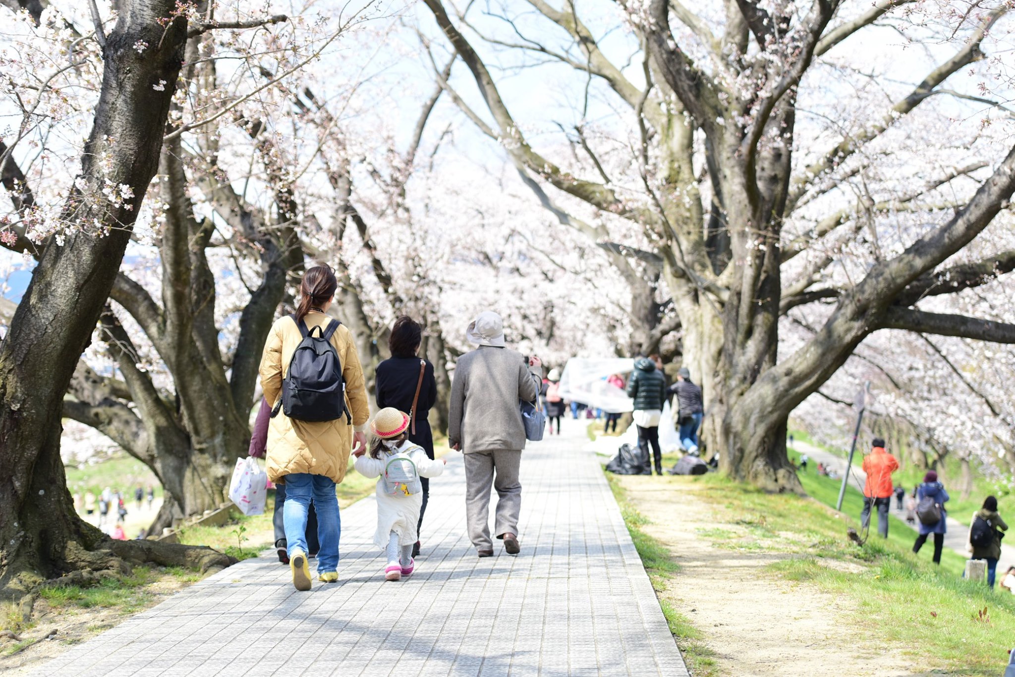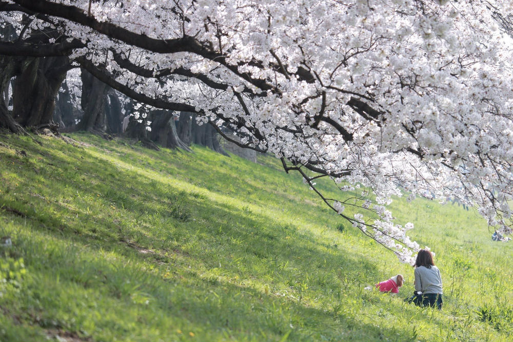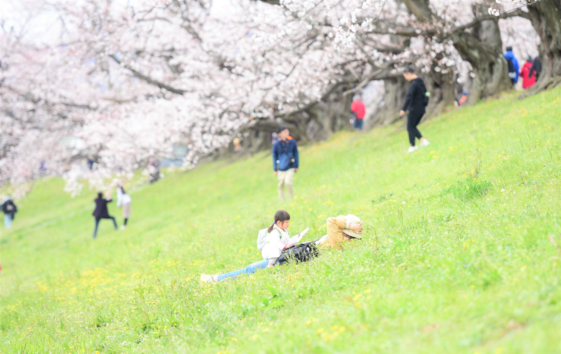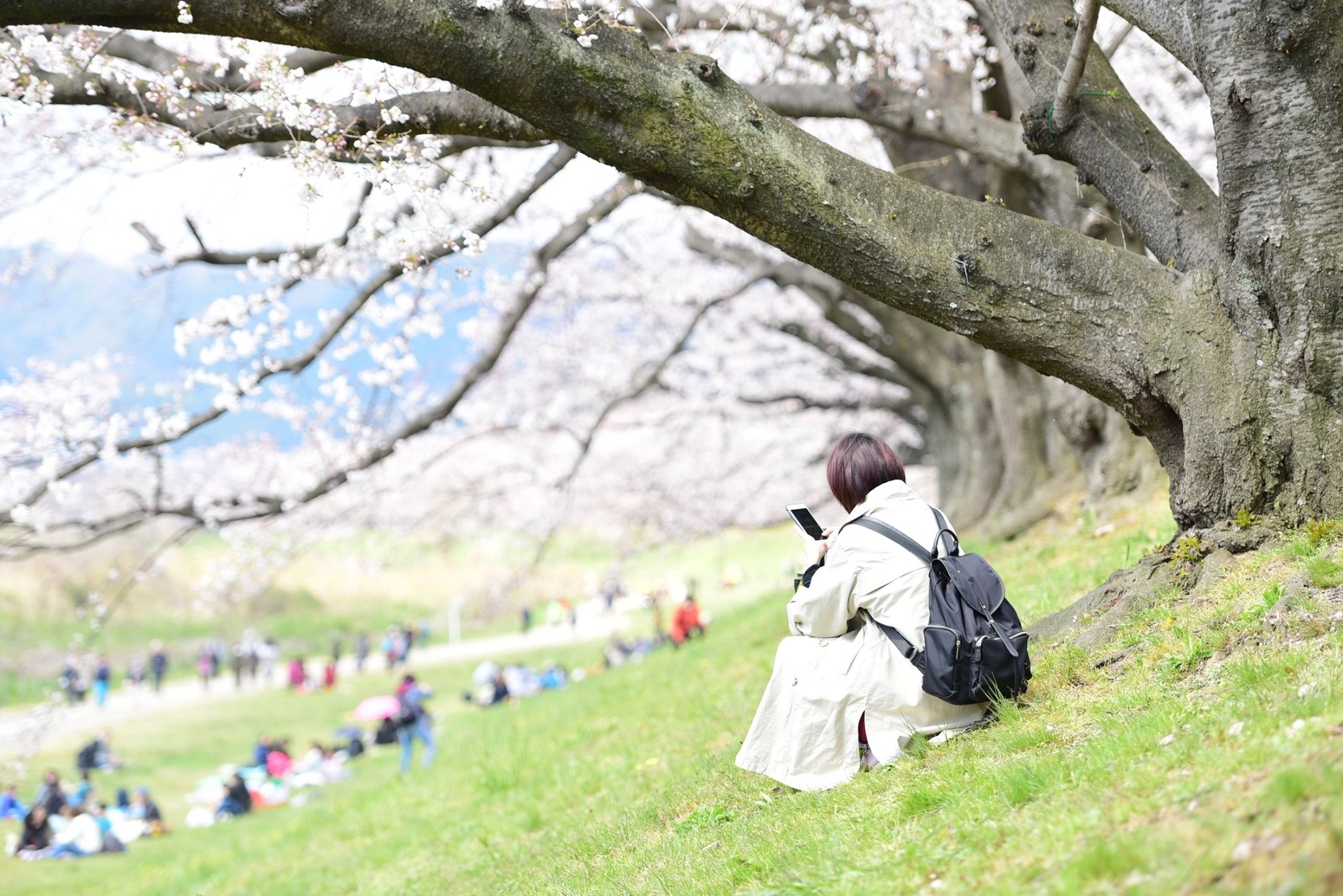 เมื่อเราเดินจากสถานีรถไฟ เดินข้ามแม่น้ำมา จะเห็นว่ามีนักท่องเที่ยวจำนวนมากที่หลั่งไหลเดินตามกันมา แต่ด้วยความที่บริเวณสวนมีพื้นที่อันกว้างใหญ่ แนวต้นซากุระที่ทอดยาว สามารถรองรับผู้คนจำนวนมากได้อย่างสบายๆ ไม่รู้สึกถึงความแออัดแต่อย่างใด