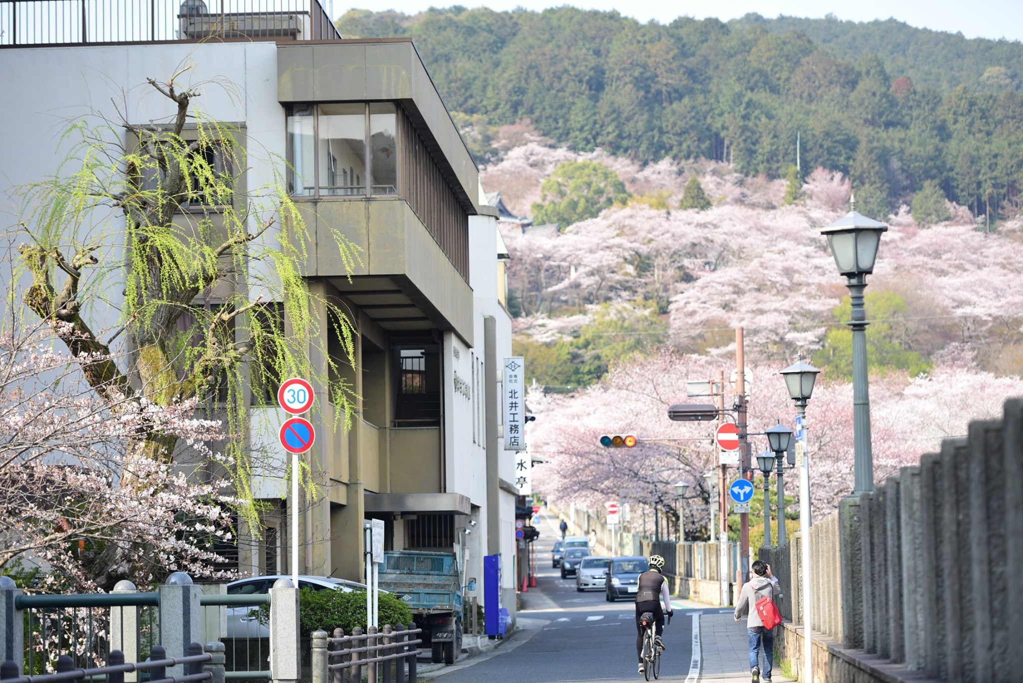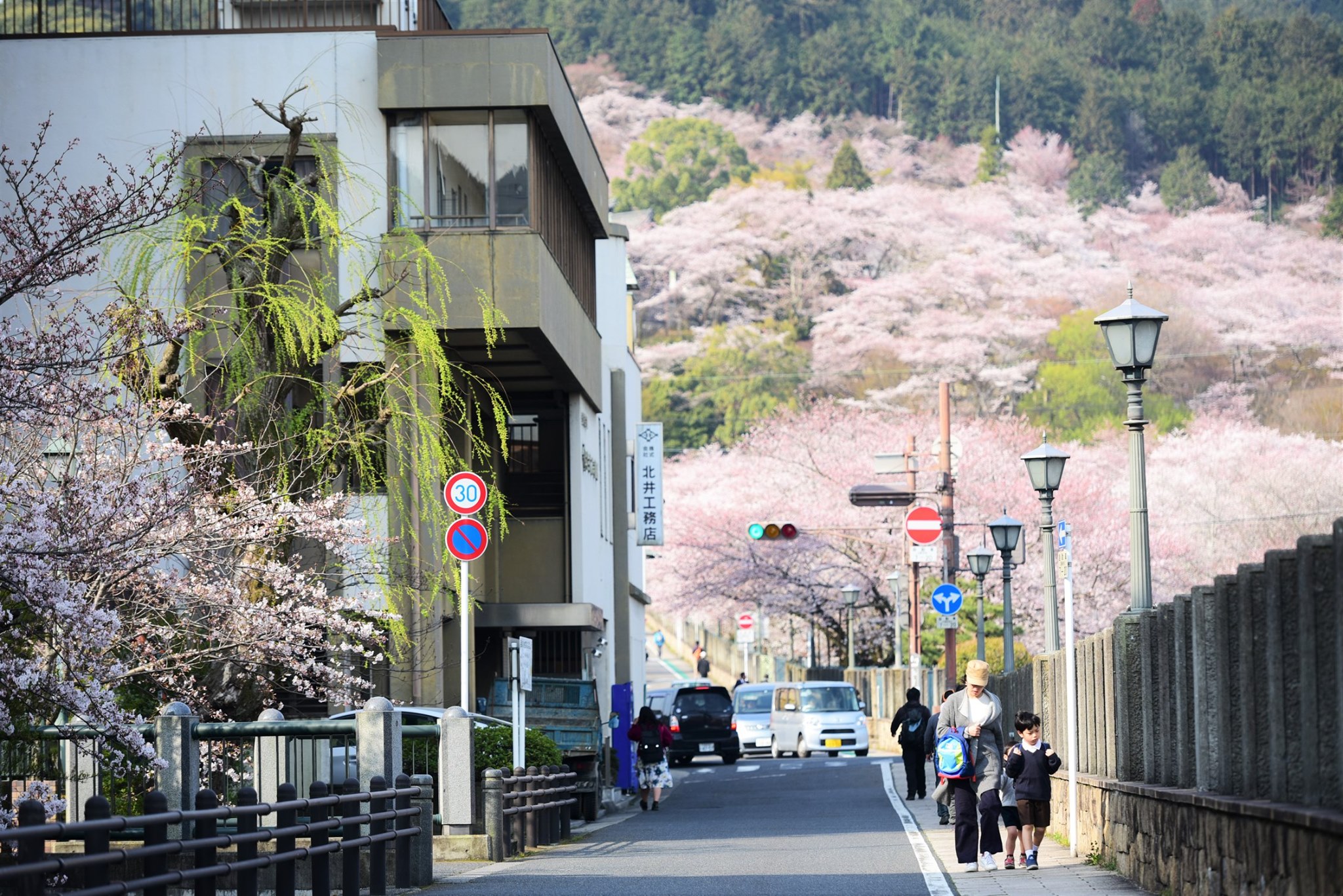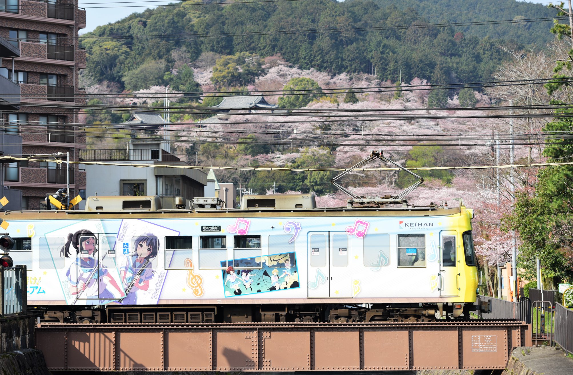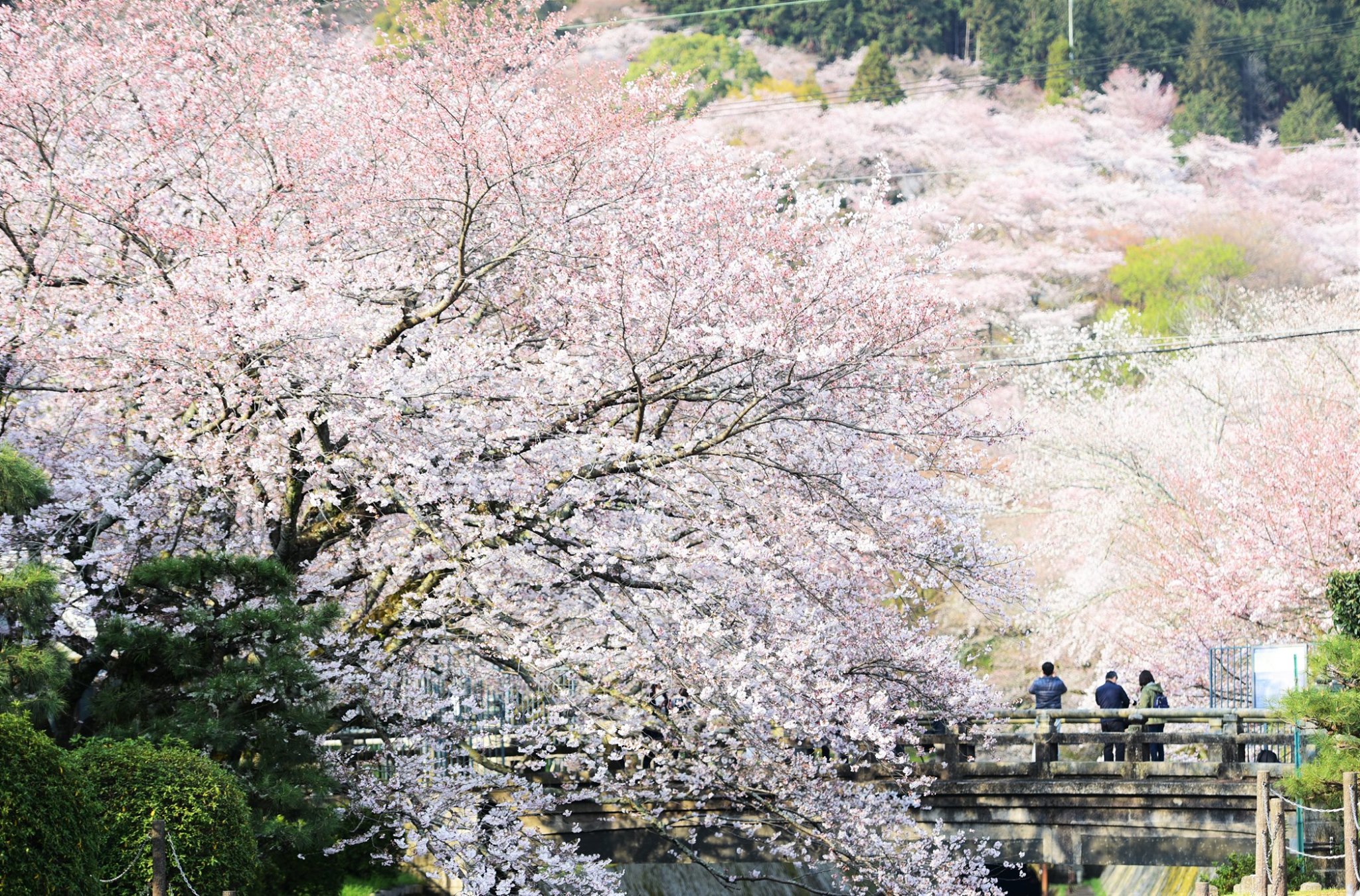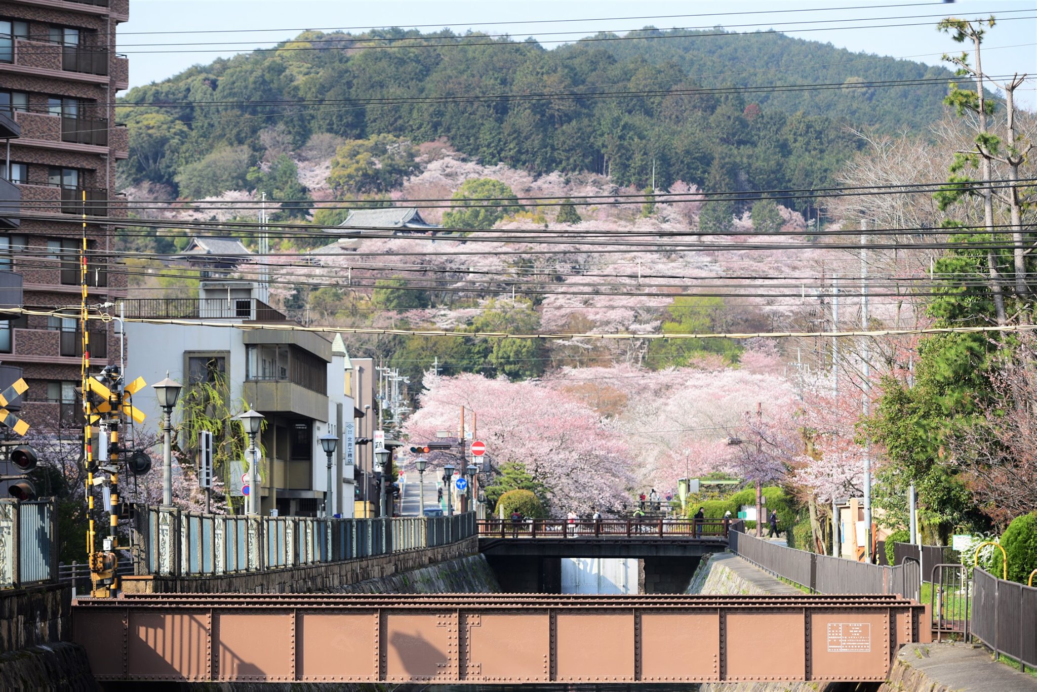 จากคลอง biwako canal ที่ miidera station เมื่อมองขึ้นไปยังฝั่งภูเขาก็จะเห็นซากุระบาน ขาวโพลนอยู่เต็มเขา โดยมีวิหารของวัดโดดเด่นอยู่ท่ามกลางซากุระ