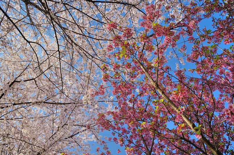 ที่สะดุดตาก คือซากุระที่นี่จะปลูกเอาไว้สองพันธ์ คือพันธุ์สีชมพูเข้ม กับซากุระสายพันธุ์หลัก แต่อาจจะบานเต็มที่ไม่พร้อมกันทีเดียว ซากุระต้นสีชมพูเข้ม ลุงหมอไม่แน่ใจว่าเป็นพันธุ์ kawazu หรือไม่ แต่เนื่องจากต้นยังไม่ใหญ่จึงได้รับความเสียหายจากพายุในช่วงฤดูมรสุมที่ผ่านไป