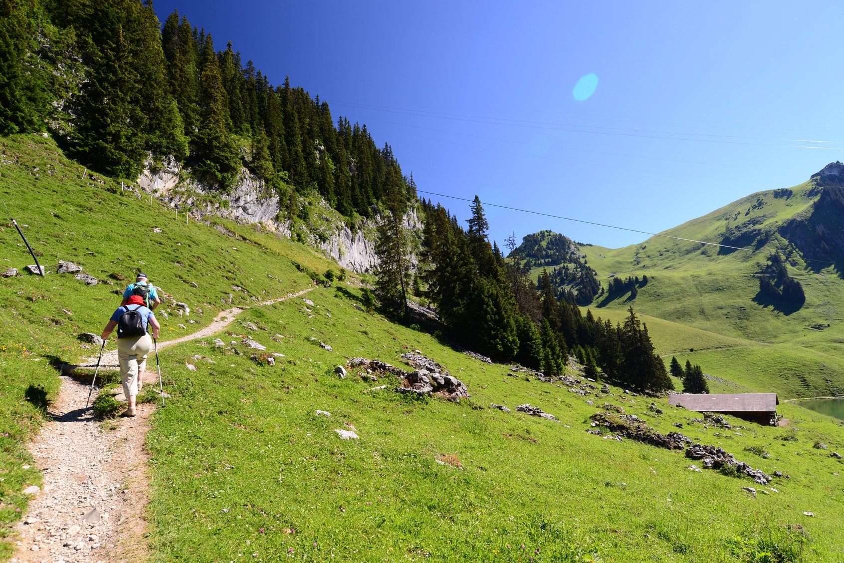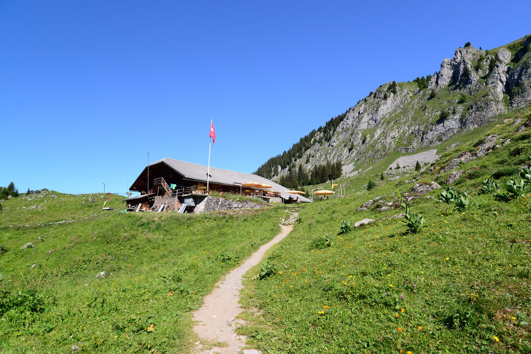 จนถึงร้านอาหารเล็กๆ ที่ชื่อว่า Berggasthaus Oberstockenalp จะมีทางเดินขึ้นไป Stockhorn ทางขวามือ