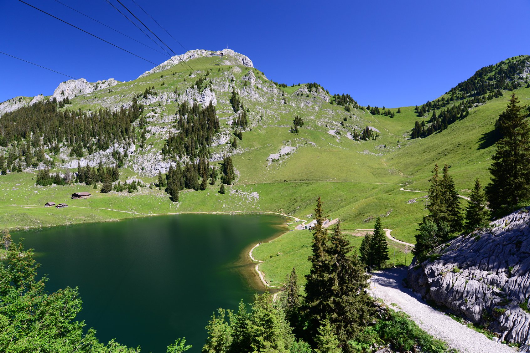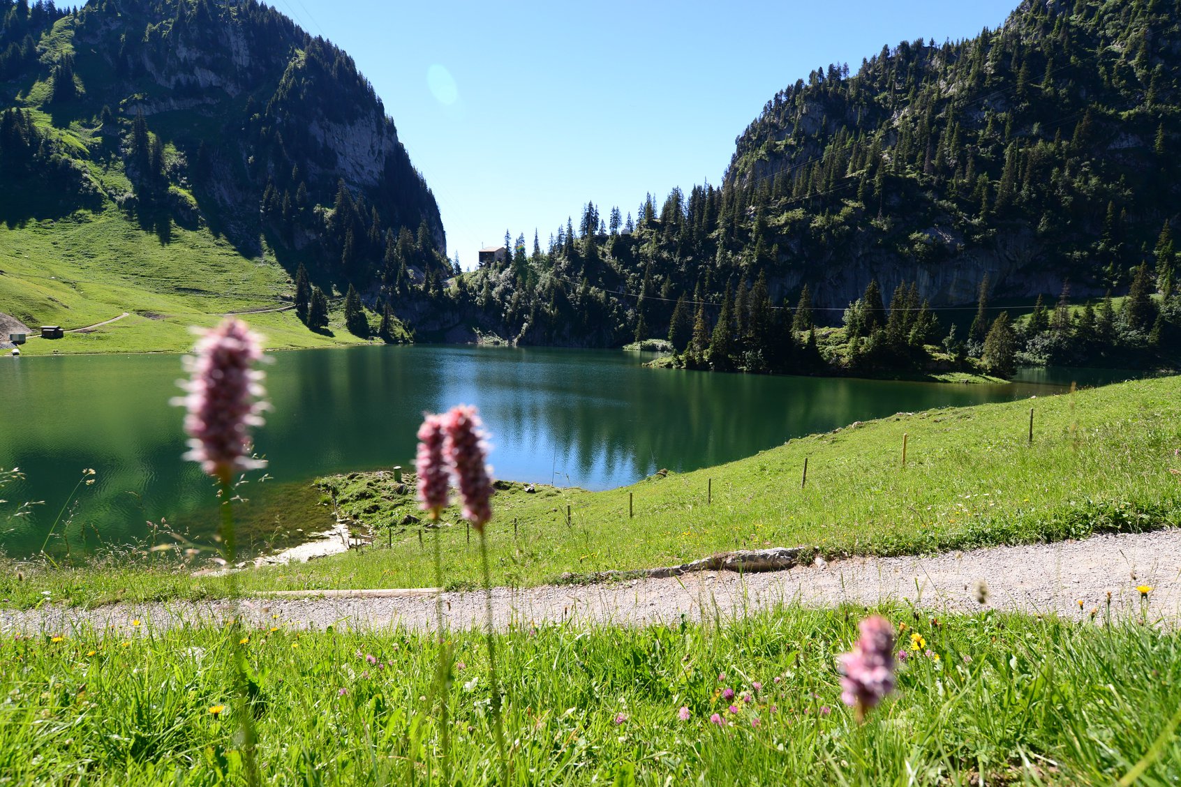นี่คือทะเลสาบ Hinterstockensee ซึ่งตั้งอยู่บริเวณสถานีกระเช้า Chrindi เป็นสถานีเชื่อมต่อ ที่จะขึ้นไปยังยอดเขา Stockhorn