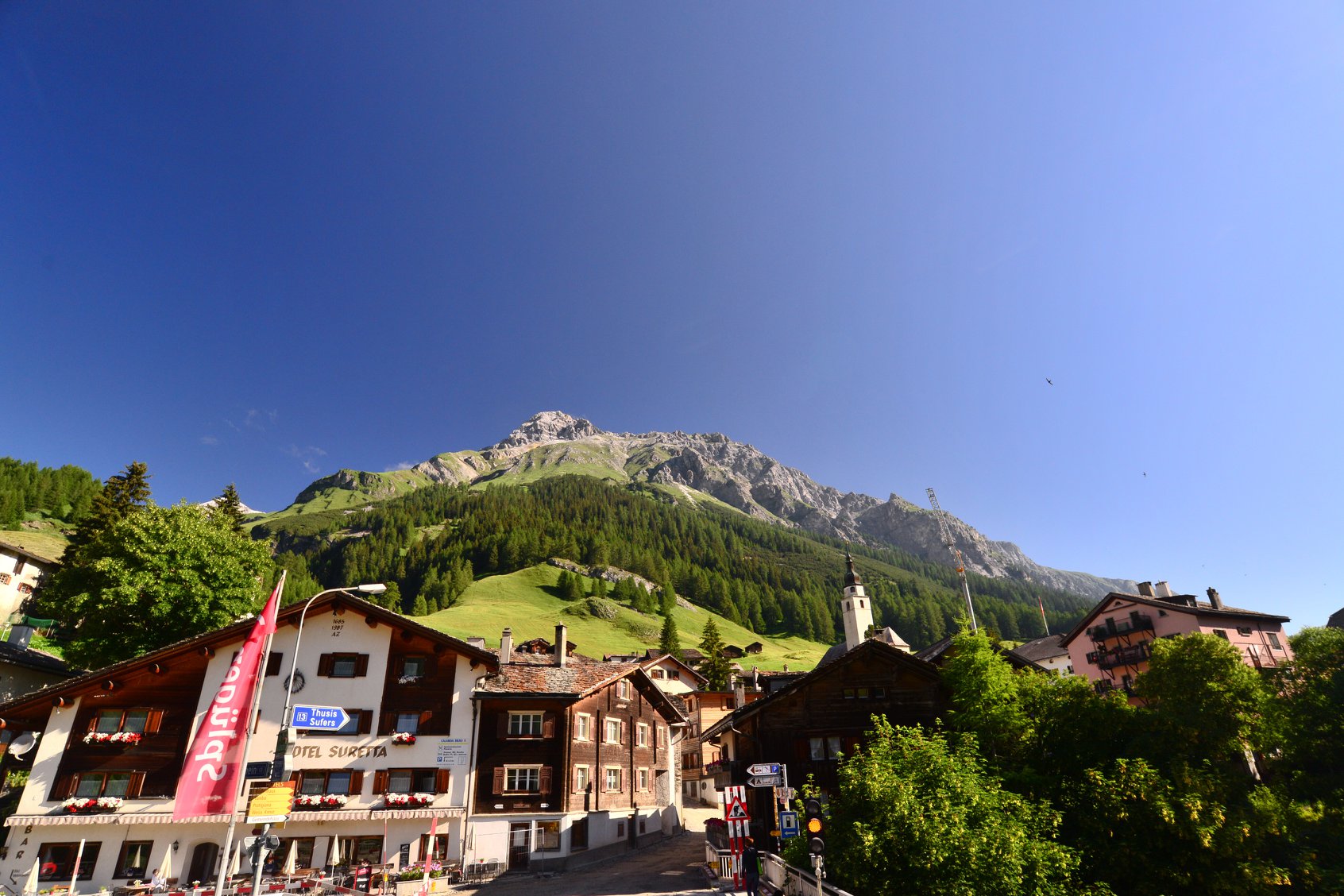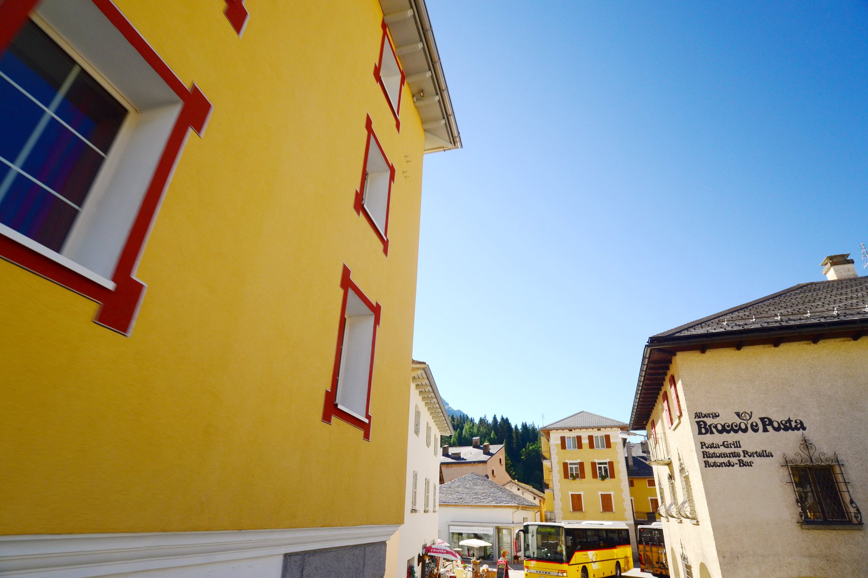 แต่ถ้าใครอยากสัมผัสประสบการณ์ที่สวยงามยิ่งกว่าด้วยการนั่งรถบัสที่ลัดเลาะขึ้นเขา San Bernadino Pass ก็จะต้องเปลี่ยนรถเป็นสาย 541 ที่ Thusis ไปยัง S. Bernardino