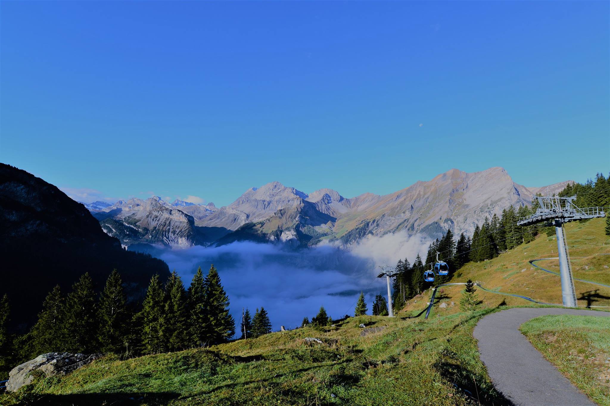 การเดินทาง นั่งรถไฟลงสถานี Kandersteg แล้วเดินผ่านเมือง ไปยังสถานีกระเช้าเพื่อนั่งขึ้นมาบนยอดเขา