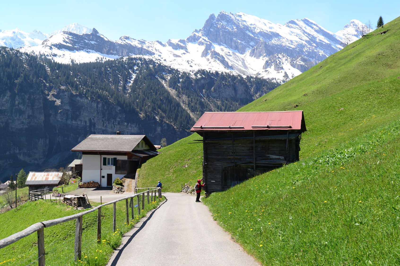 เส้นทางที่เดินลงไปยัง Gimmelwald ซึ่งเป็นหมู่บ้านเล็กๆ จะเป็นเส้นทางลงเขา ทำให้เราสามารถเดินเที่ยวได้อย่างสบาย
