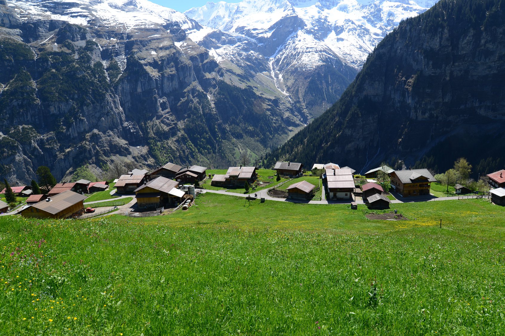 หมู่บ้านเล็กๆ ในเขต Berner oberaland อันมียอดเขาอันสวยงามอยู่รายรอบ เหมาะจะเป็นที่เดินเล่นชมบรรยกาศบ้านเรือนผู้คนตามภูเขา ที่เป็นธรรมชาติของ Switzerland