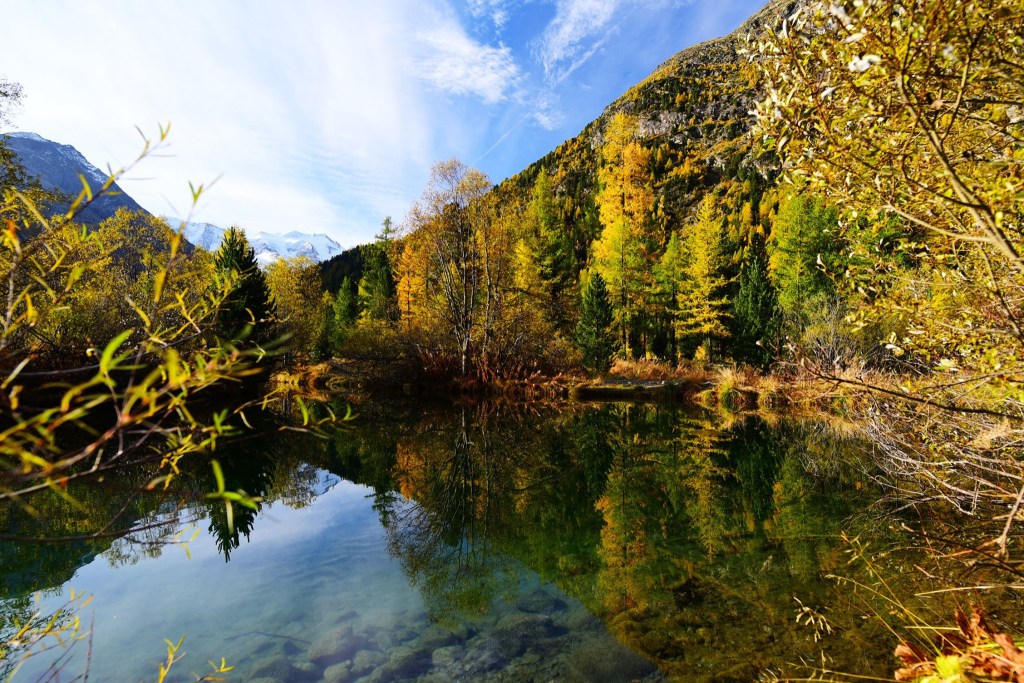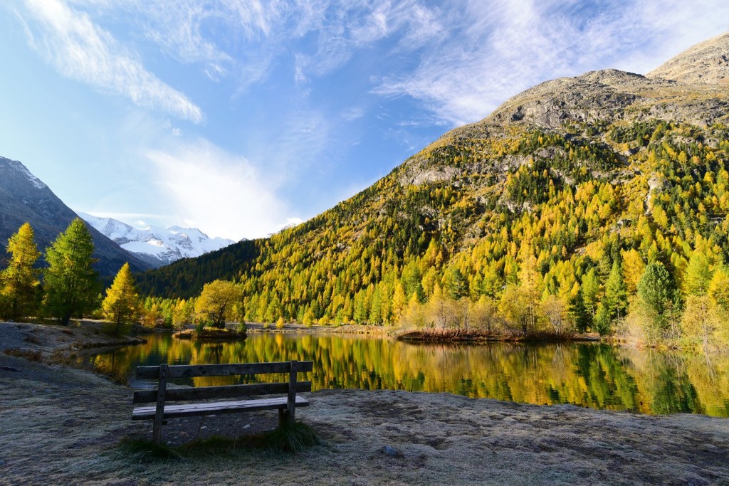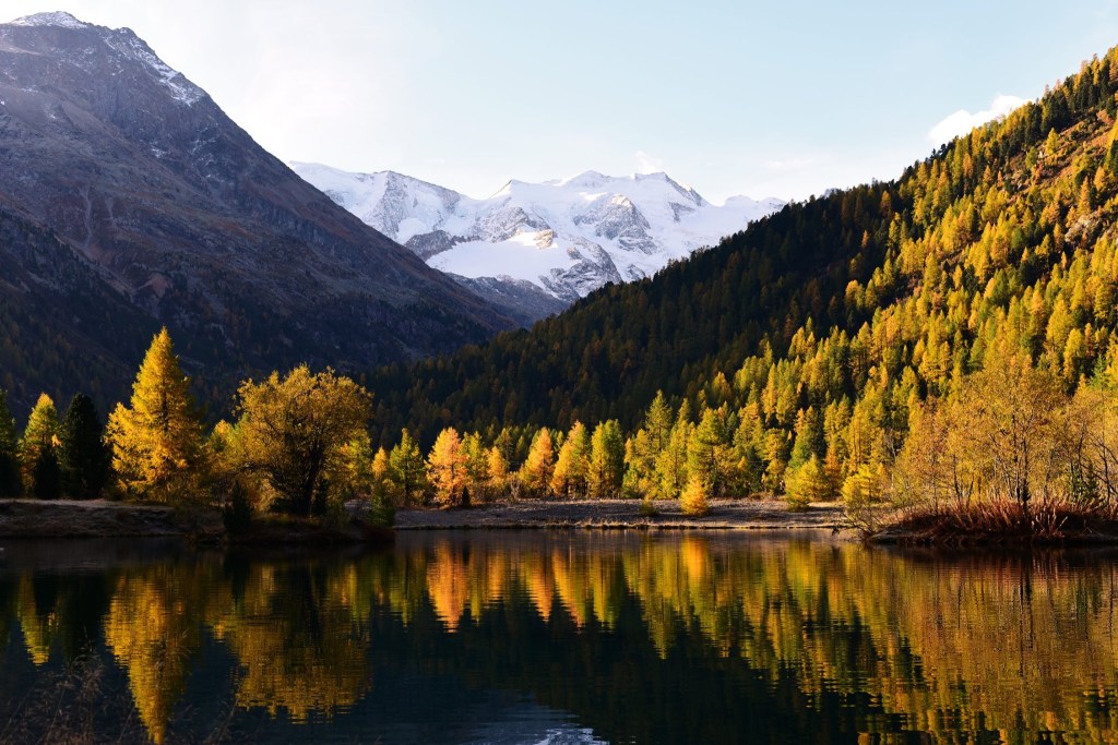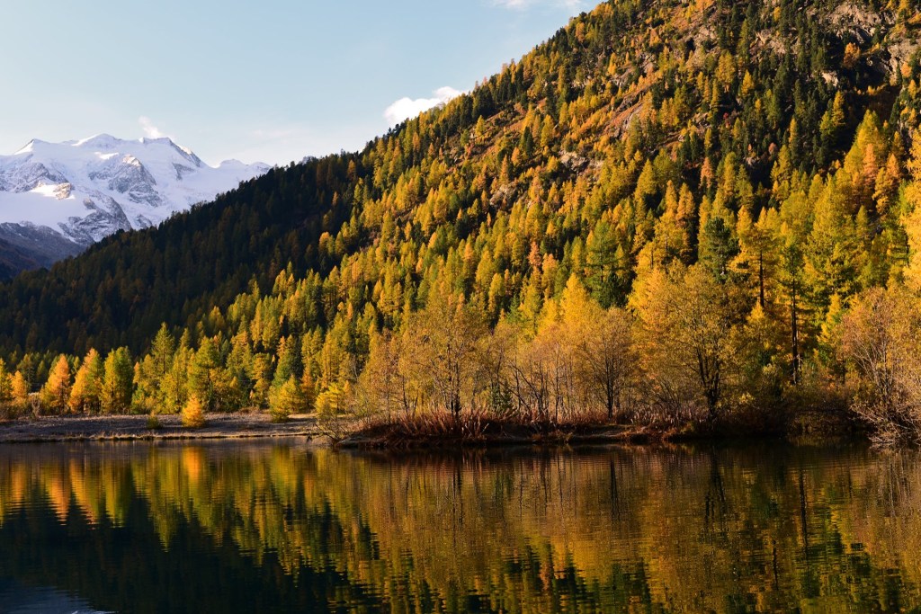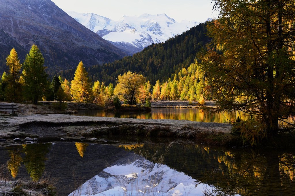 อีกด้านหนึ่งคือ พื้นที่ตั้งแคมป์ ที่อาศัยชื่อของธารน้ำแข็ง ว่า Moteratsch camping หลายคนกำลังหลับใหลใต้ผ้าห่มอุ่นในรถบ้านและเต้นท์กลางแจ้งอย่างมีความสุข…. แต่บางคนก็ตื่นขึ้นมาชื่นชมบรรยากาศของยามเช้าที่สวยงามเกินกว่าที่จะปล่อยให้แดดยามสายค่อยๆกลืนหายเอาความสดชื่นไป
