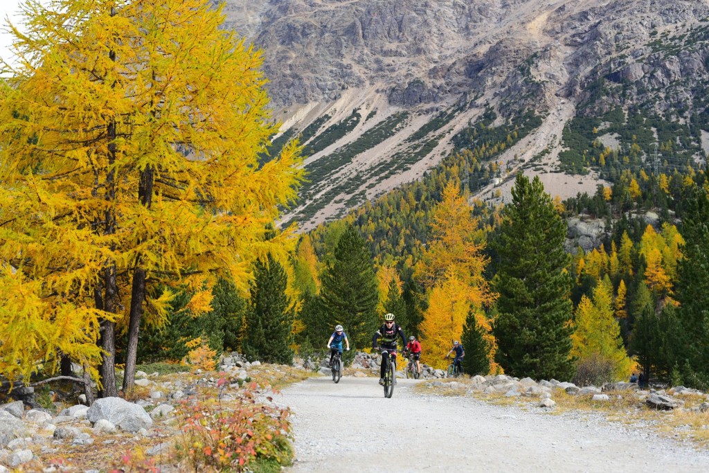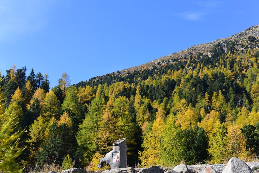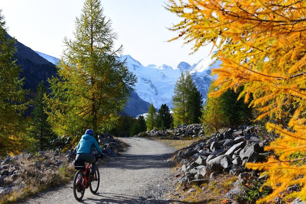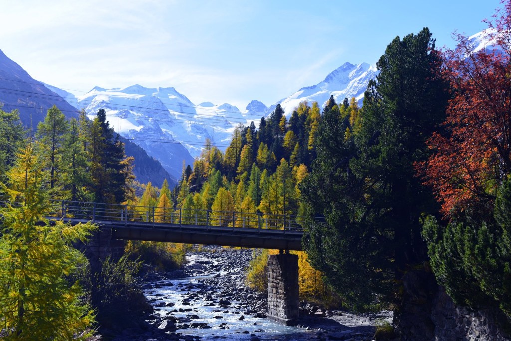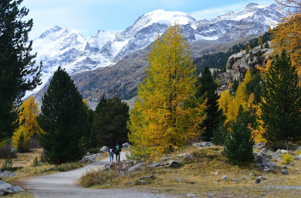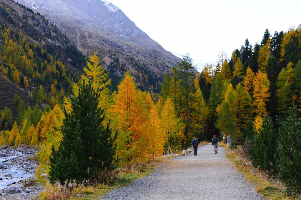 จากบริเวณ Moteratsch camping เราจะมองเห็นยอดเขา และธารน้ำแข็งอันโดดเด่น อยู่ไม่ใกล้ ไม่ไกล นั้นคือ Morteratsch Glacier ซึ่งความพิเศษของธารน้ำแข็งที่รัฐ Engadin แห่งนี้คือ ในช่วงฤดูใบไม้ร่วง ยอดสนที่อยู่รายรอบภูเขาแถบนี้จะพากันเปลี่ยนเป็นสีเหลืองส้มอย่างพร้อมใจ ทำให้ธารน้ำแข็งแห่งนี้มีสีสันสดใสสวยกว่าใครในฤดู Autumn