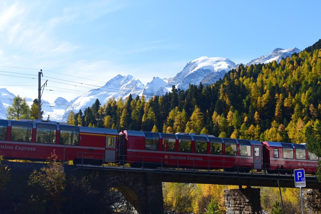 การเดินทาง นั่งรถไฟ จาก St.Moritz มาลงที่สถานี Morteratsch