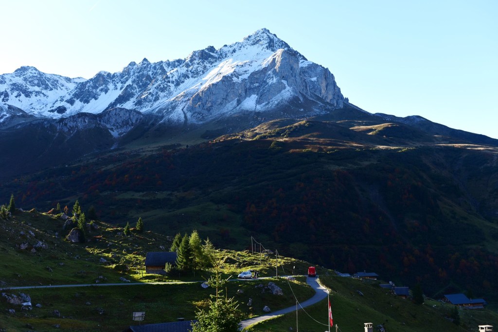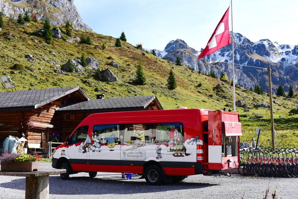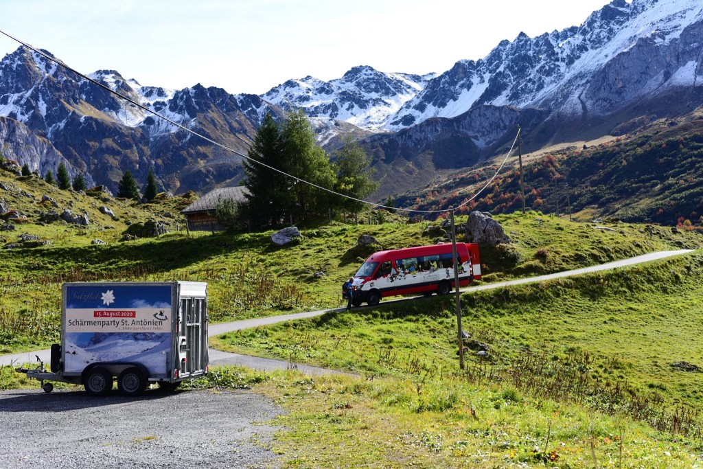 ใน App SBB บอกว่าให้ต่อรถบัส สาย 277 ไปลงสุดปลายทาง แต่ว่าความจริง รถที่จะพาไป เป็นรถ Shuttle bus เล็ก สีแดงสดใสคันนี้ ไม่ใช่รถบัสใหญ่แบบที่คิดไว้ ซึ่งรถจอดอยู่ที่ป้าย Antönien, Platz ตามเวลาที่บอกไว้ใน App และต้องจ่ายค่าโดยสารต่างหากไม่สามารถใช้สวิสพาสได้