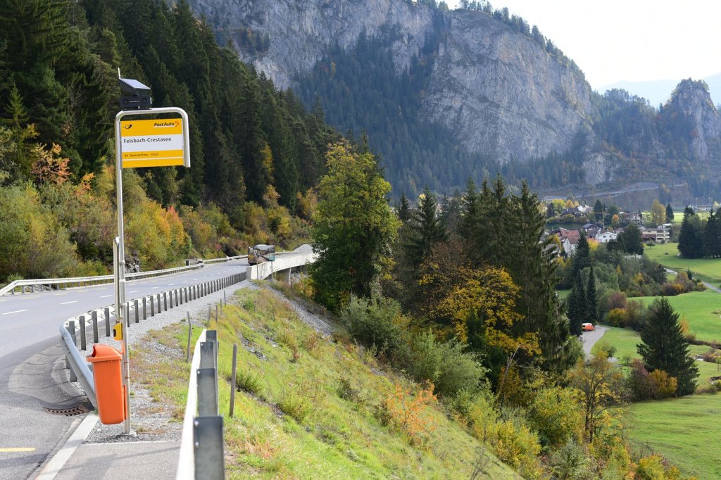 การเดินทาง นั่งรถบัส สาย 81 จากสถานี Chur ลงป้าย Felsbach-Crestasee