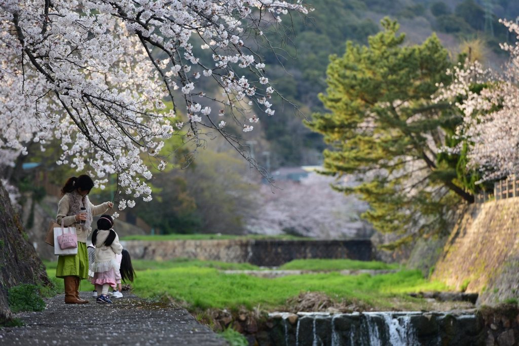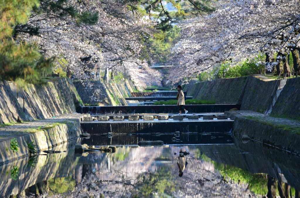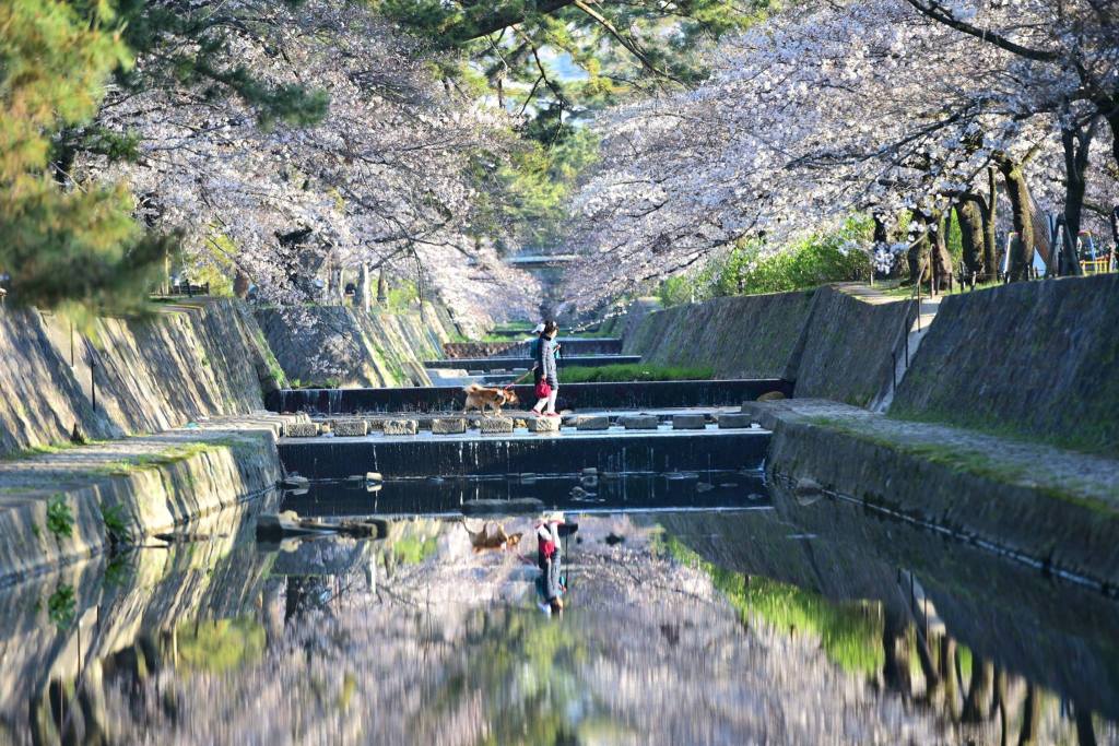 ริมฝั่งคลอง มีต้นซากุระ ให้เดินชมขึ้นไปได้เรื่อยๆ