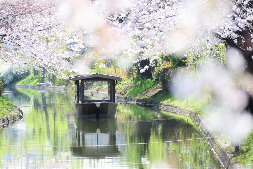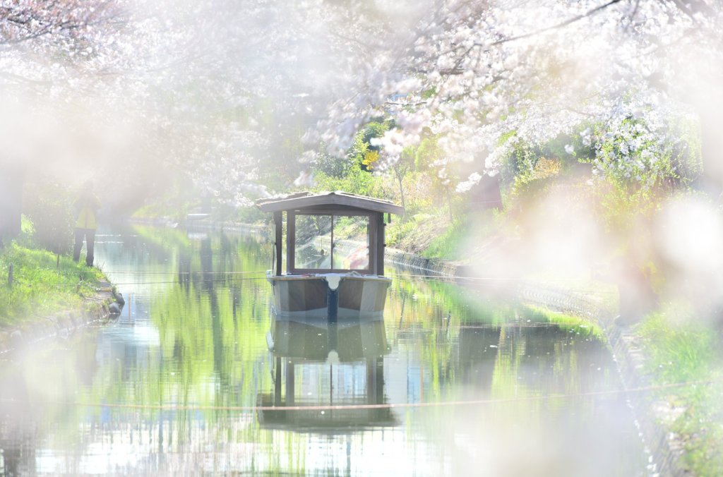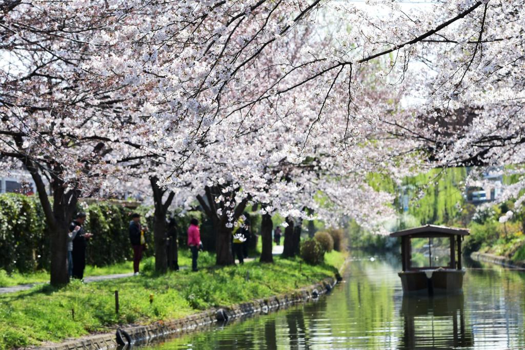 สถานที่ชมซากุระบริเวณสถานี รถไฟ Chushojima Station คือ คลองสาเก Fushimi มีชื่อเสียงมาจากโรงสาเกเก่าแก่ที่อยู่บริเวณใกล้กับคลองแห่งนี้นั่นเอง
