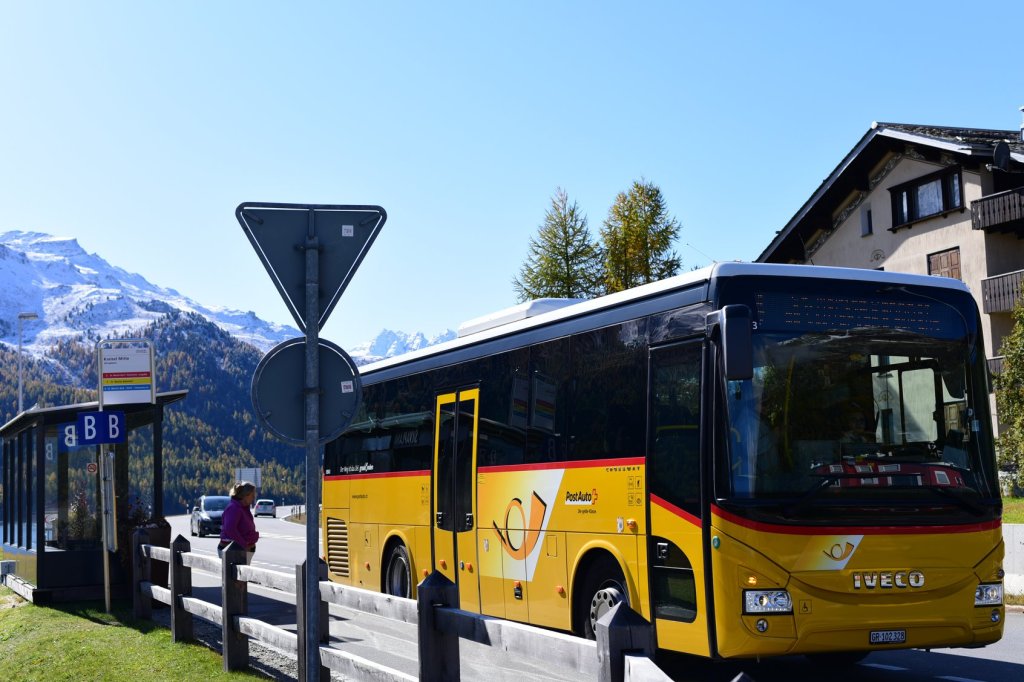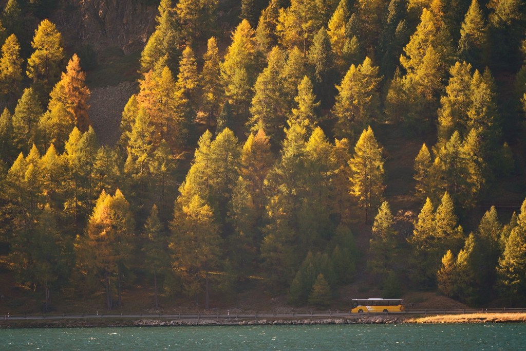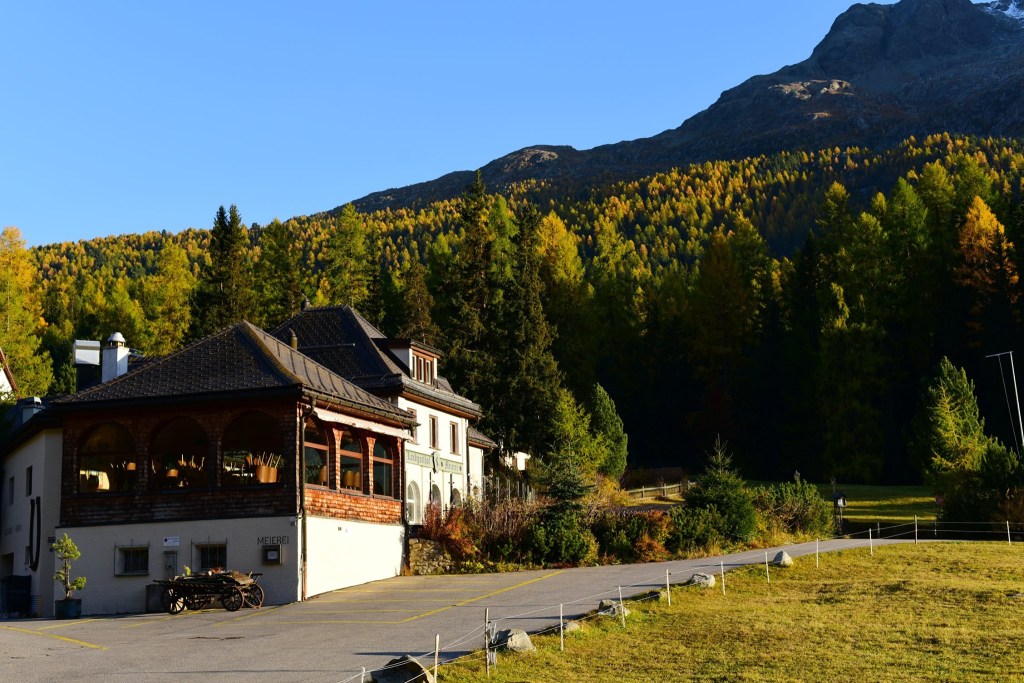 อย่างที่ลุงหมอเคยเล่าให้ฟังในตอนที่ผ่านๆมาว่า St.Moritz นอกจากจะเป็นชุมทางสถานีรถไฟ ที่มีทั้งขบวนรถไฟ Glacier Express และ Bernina Express ที่นี่ยังมีรถบัสที่แล่นไปตามเส้นทางต่างๆใน Engadin ซึ่งเป็นภูมิประเทศที่มีใบสนเปลี่ยนสีอยู่โดยรอบ …..ที่นี่จึงเหมาะสำหรับเลือกเป็นเมืองที่พัก ในการท่องเที่ยวชมใบไม้เปลี่ยนสี แต่ว่าลุงหมอไม่ได้เลือกพักที่ St.Moritz