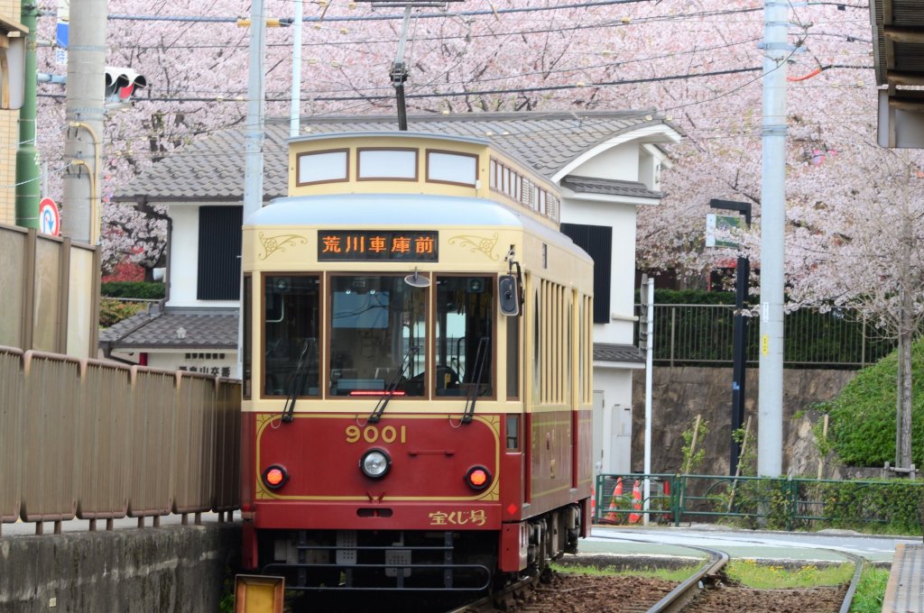 จาก Waseda station ก็จะแล่นมาเรื่อยๆผ่านสถานีต่างๆ ไปจนถึง สวน Asukayama (Asukayama Station) ซึ่งอยู่กึ่งกลางของเส้นทางรถรางสายนี้