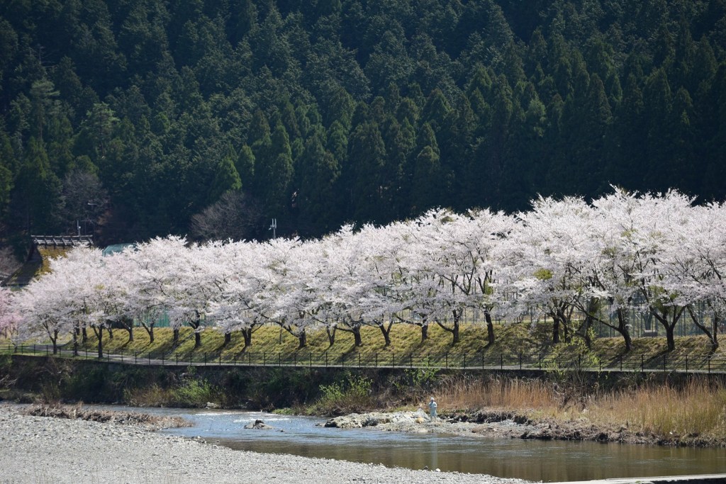 เพระว่าเลยไป ยังมีทิวแถวซากุระสวยๆให้ชม ที่ริมแม่น้ำ