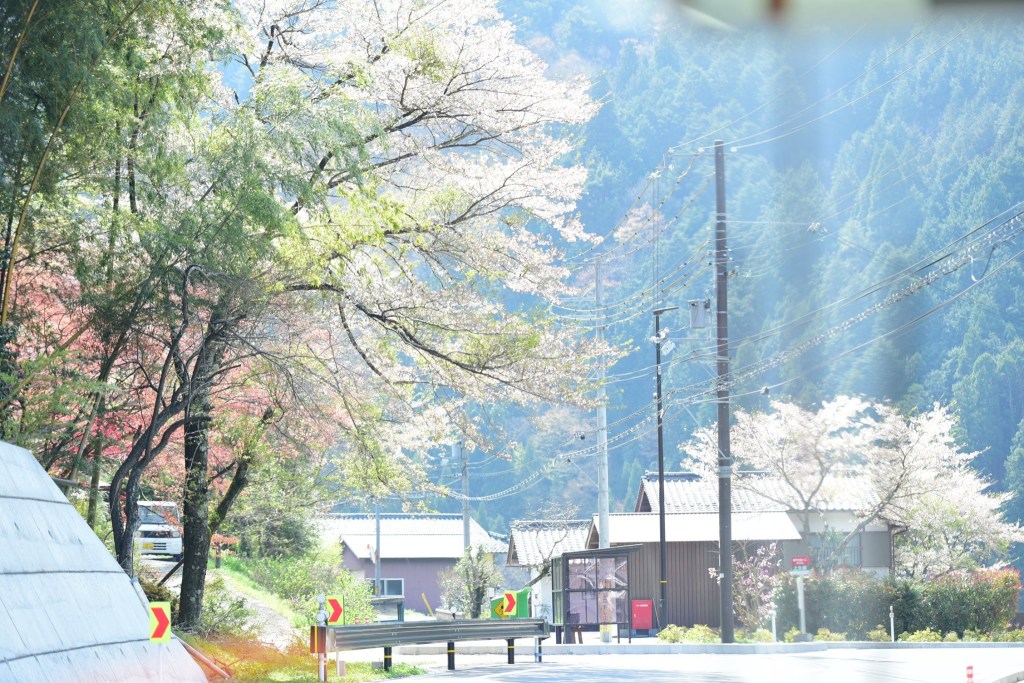 ถ้าใครเคยเที่ยวหมู่บ้าน Kayabuki no Sato แล้ว ลุงหมอแนะนำให้ลองนั่งรถบัสมาถึงป้าย Chimiguchi bus stop ซึ่งอยู่เลยป้าย Kita (ป้ายหน้าหมู่บ้าน Kayabuki no sato) มาสองป้าย ก็จะเป็นอันสิ้นสุดการชมซากุระด้วยรถบัส nantan