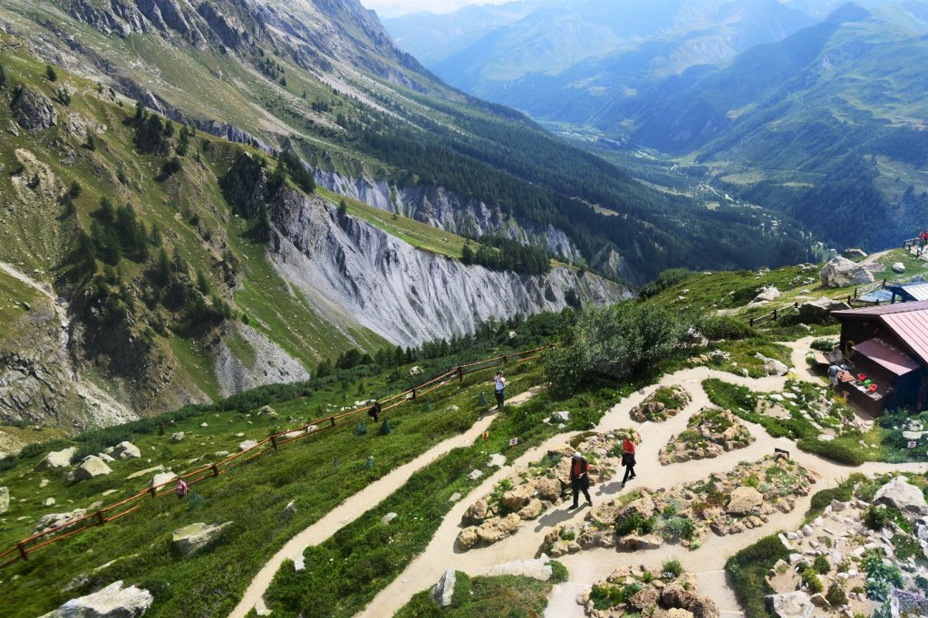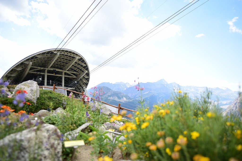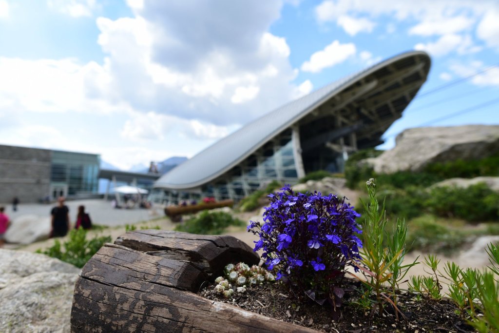 เมื่อซื้อตั๋วขึ้นกระเช้า Monte Bianco Skyway เรียบร้อย ถ้าจะเที่ยวชมสวน botanical เราก็ต้องแวะออกมาที่สถานีกระเช้า Pavillon du Mont Fréty เป็นสถานีกึ่งกลาง ก่อนขึ้นไปถึงยอดเขา