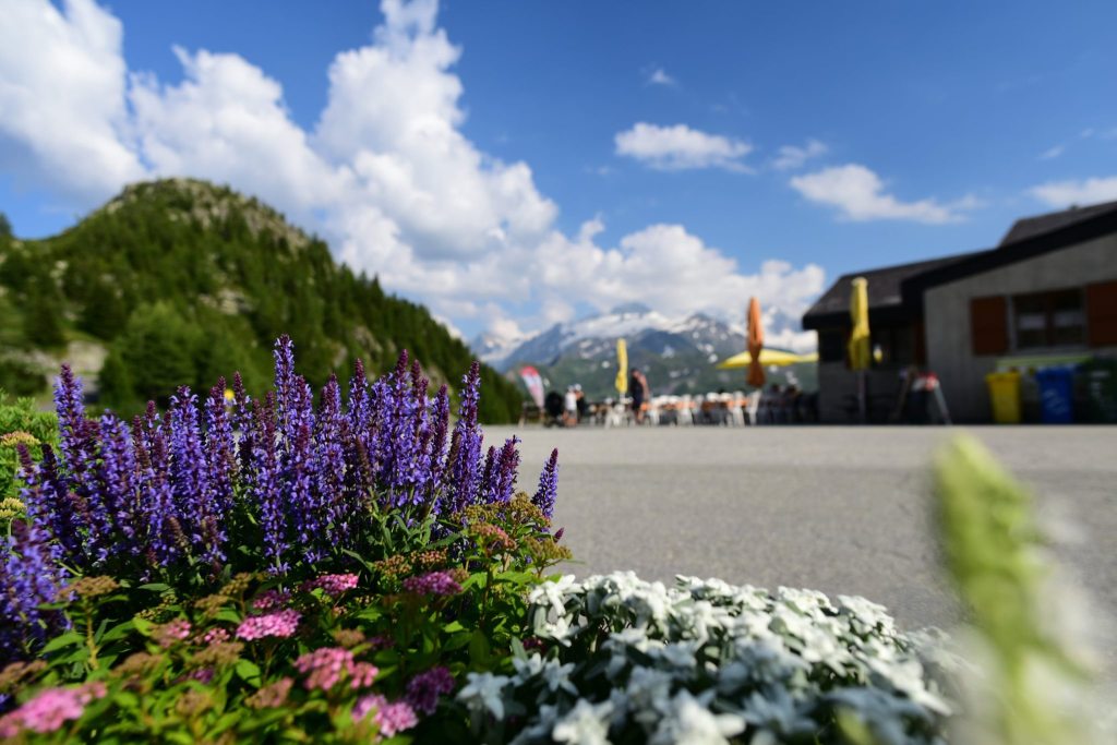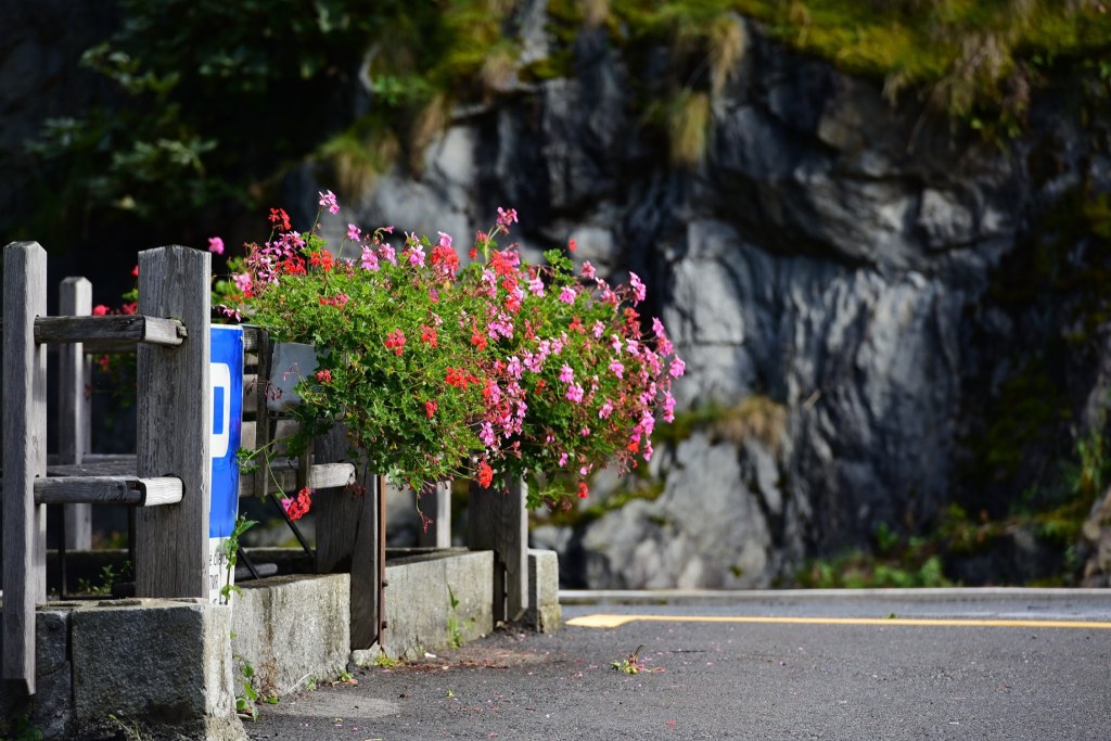 มาถึงจุดชมวิวแล้ว ในฤดูร้อนมีดอกไม้ปลูกไว้ให้บรรยากาศแลดูมีชีวิตชีวา
