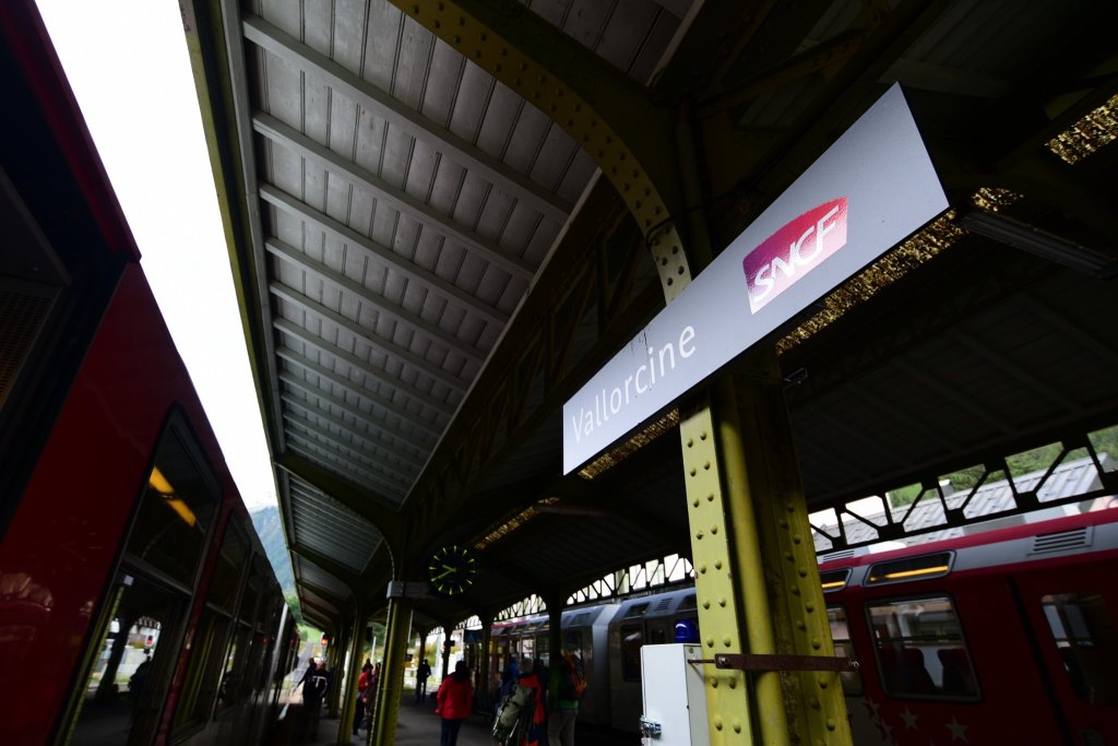 เมื่อรถไฟ Mont blanc express แล่นข้ามเขตแดนมาถึงสถานี Vallorcine จะเห็นสัญลักษณ์การรถไฟ SNCF ของฝรั่งเศส เราจะต้องเปลี่ยนขบวนรถ(ไม่ต้องซื้อตั๋วหรือจ่ายเงินเพิ่ม) เพื่อนั่งต่อไปยัง Chamonix
