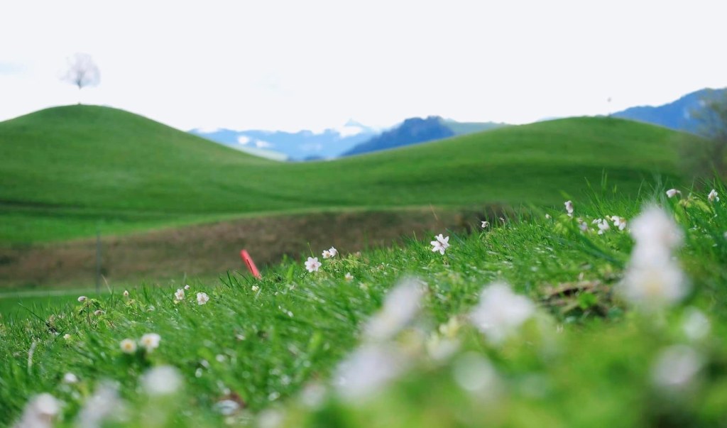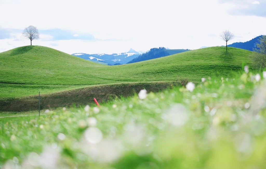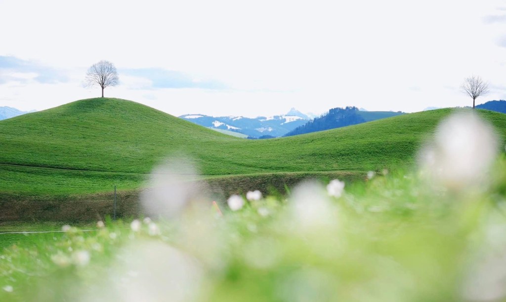 หน้าตาของทุ่งหญ้าที่มีตนไม้ปลูกไว้ด้านบนยอดเนินอย่างโดดเดี่ยว เป็นเอกลักษณ์ที่เห็นก็รู้ว่านี่คือ เมือง Neuheim