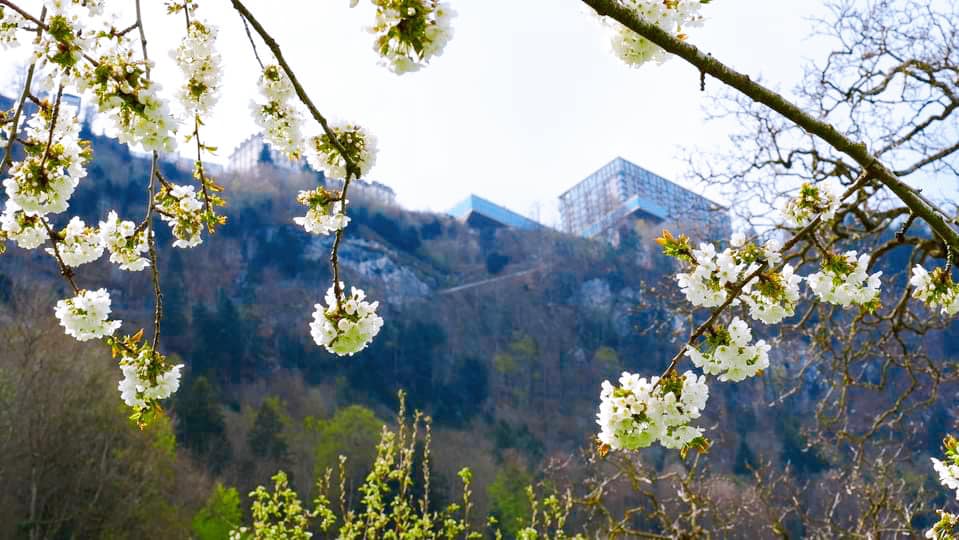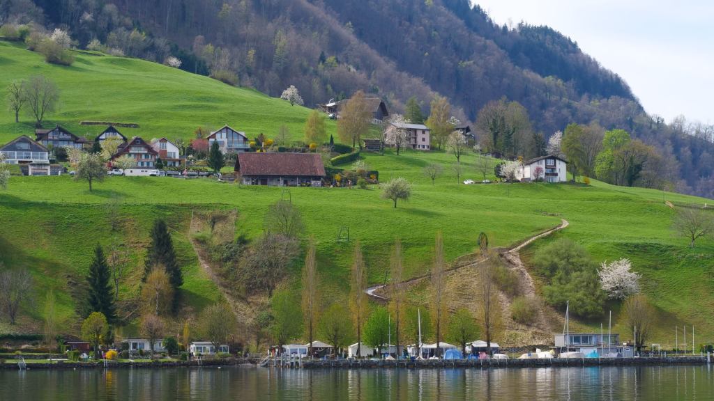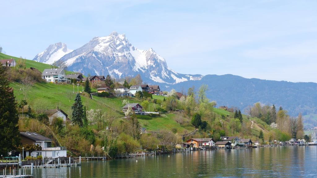 Bürgenstock อยู่ในเขตรัฐ Nidwalden แต่ว่าติดกับเขตรัฐ Lucern จนแยกไม่ออก ทัศนียภาพและภูมิประเทศในสองรัฐนี้จะคล้ายๆกัน ซึ่งในฤดูใบไม้ผลิก็จะมีเชอร์รี่บานให้เห็นเยอะพอสมควร และที่ลุงหมอเลือกมาที่ Bürgenstock ก็ตั้งใจมาถ่ายรูปเชอร์รี่ที่แถวๆท่าเรือ