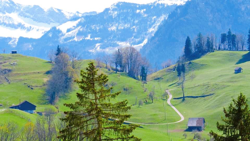 วิวฝั่งนี้ก็สวยงามไม่แพ้ฝั่งทะเลสาบ แต่จะต้องนั่งรถบัสขึ้นมา เพราะว่าขาลงรถจะวิ่งลงอีกทาง ไปยังสถานี Stansstad