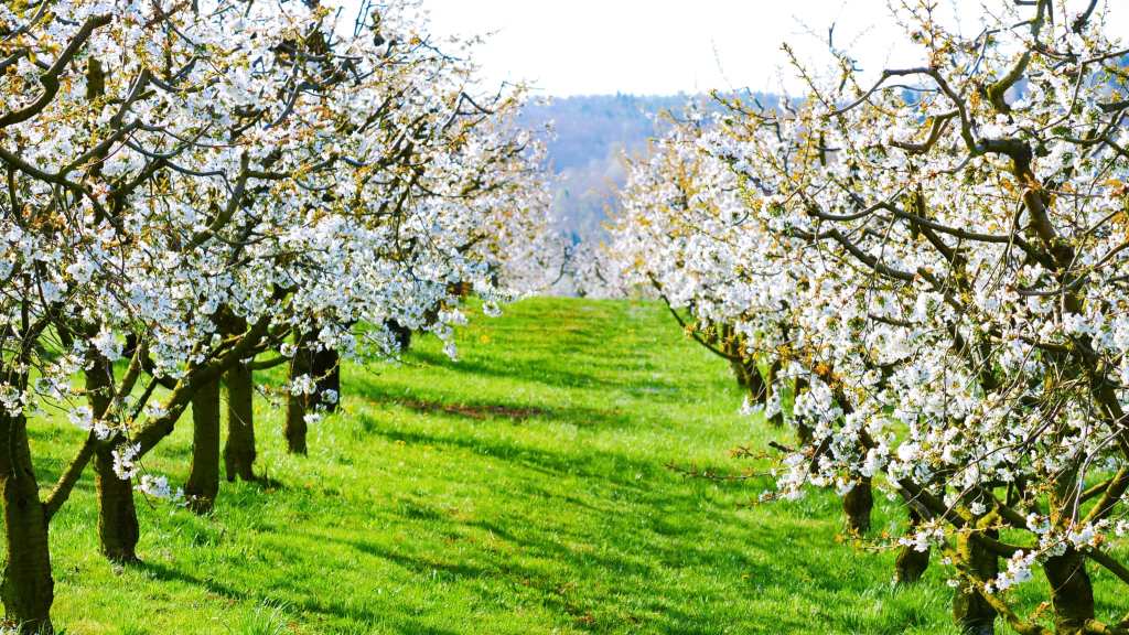 เชอร์รี่ที่ปลูกเป็นแถวเป็นแนว จะอยู่บนเนินสูงที่โอบรอบตัวเมือง
