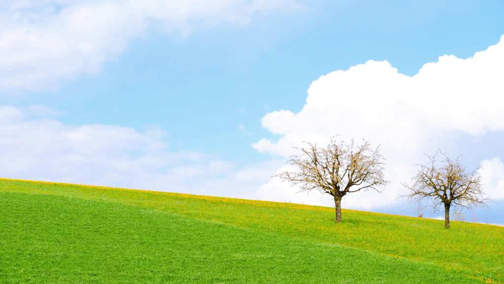 ผืนหญ้าสีเขียวเรียบสวยสะอาดตา ตัดกับท้องฟ้าใส