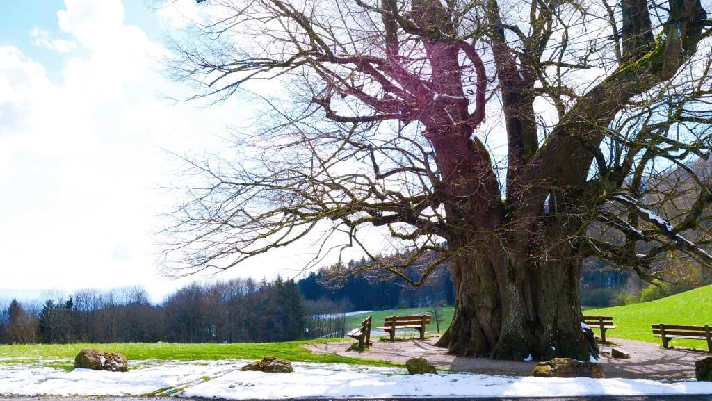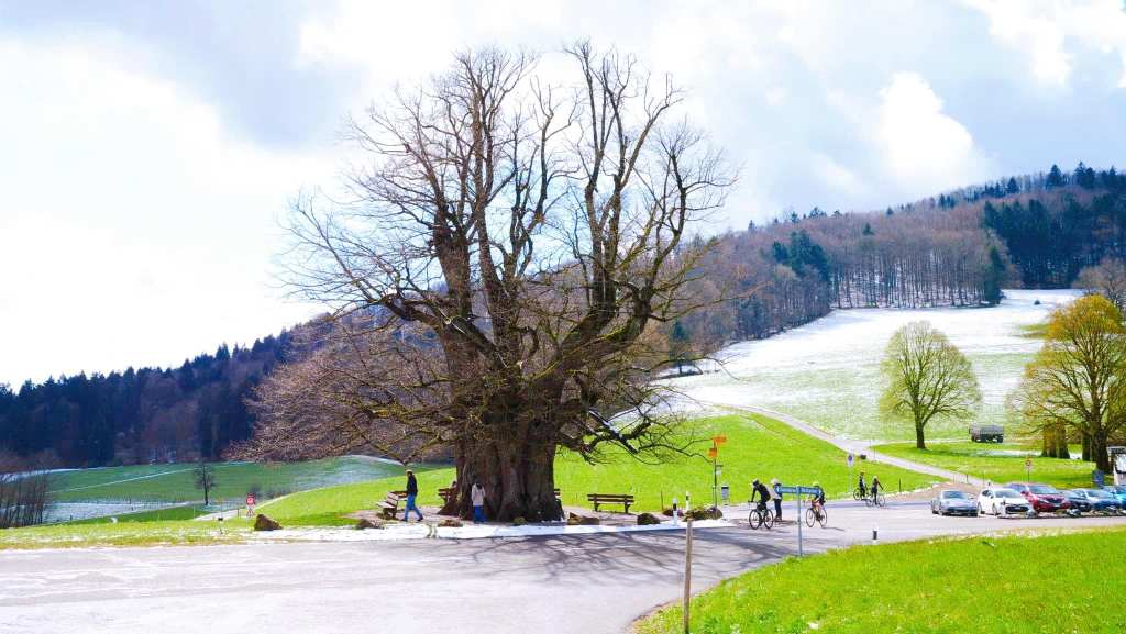 เมื่อนั่งรถบัสมาถึงป้ายหน้าหมู่บ้านก็จะเจอกับต้น linden นี้เป็นอันดับแรก ราวกับผู้เฒ่าผู้แก่ที่มานั่งรอรับแขกที่มาเยี่ยมเยือน