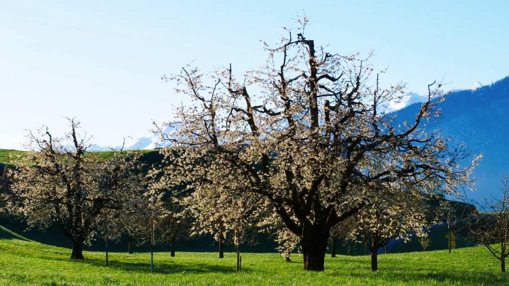 จากการหาข้อมูลเมืองที่มีต้นเชอร์รี่บริเวณรอบทะเลสาบ Zug ฉันเห็นภาพในเว็บไซด์ของเมืองชื่อ Steinerberg เป็นเมืองภูเขาอยู่บริเวณรอยต่อของรัฐ Zug กับ Schwyz ซึ่งมีต้นเชอร์รี่ปลูกอยู่มากพอสมควร ลักษณะภูมิประเทศก็น่าสนใจเพราะอยู่ท่ามกลางยอดเขาสูงในเขตเทือกเขาแอลป์ และมีทะเลสาบอยู่ใกล้ๆที่สามารถเห็นวิวทั้งยอดเขาและทะเลสาบได้พร้อมๆกัน แต่!……….