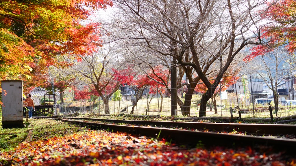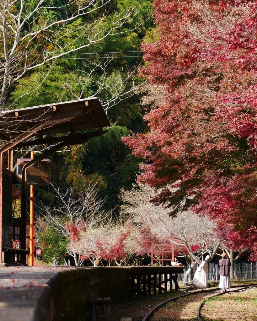 Mikawahirose เป็นสถานีรถไฟที่ไม่ได้ใช้งานแล้ว แต่กลับเป็นสถานีที่มีเสน่ห์ โดยเฉพาะในฤดูใบไม่ร่วง ซึ่งที่นี่จะมีซากุระสองฤดู shikizakura ปลูกอยู่ คนละฝั่งกับ japanese maple