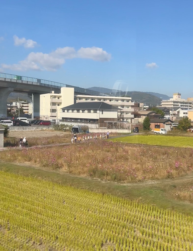 แค่นั่งมองผ่านกระจกรถไฟ เห็นเด็กๆเข้าแถวไปโรงเรียน ก็มีความสุขแล้ว สำหรับการเที่ยวญี่ปุ่น